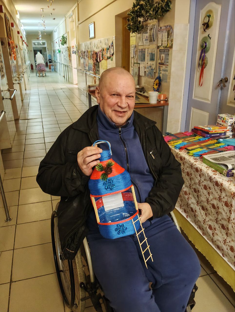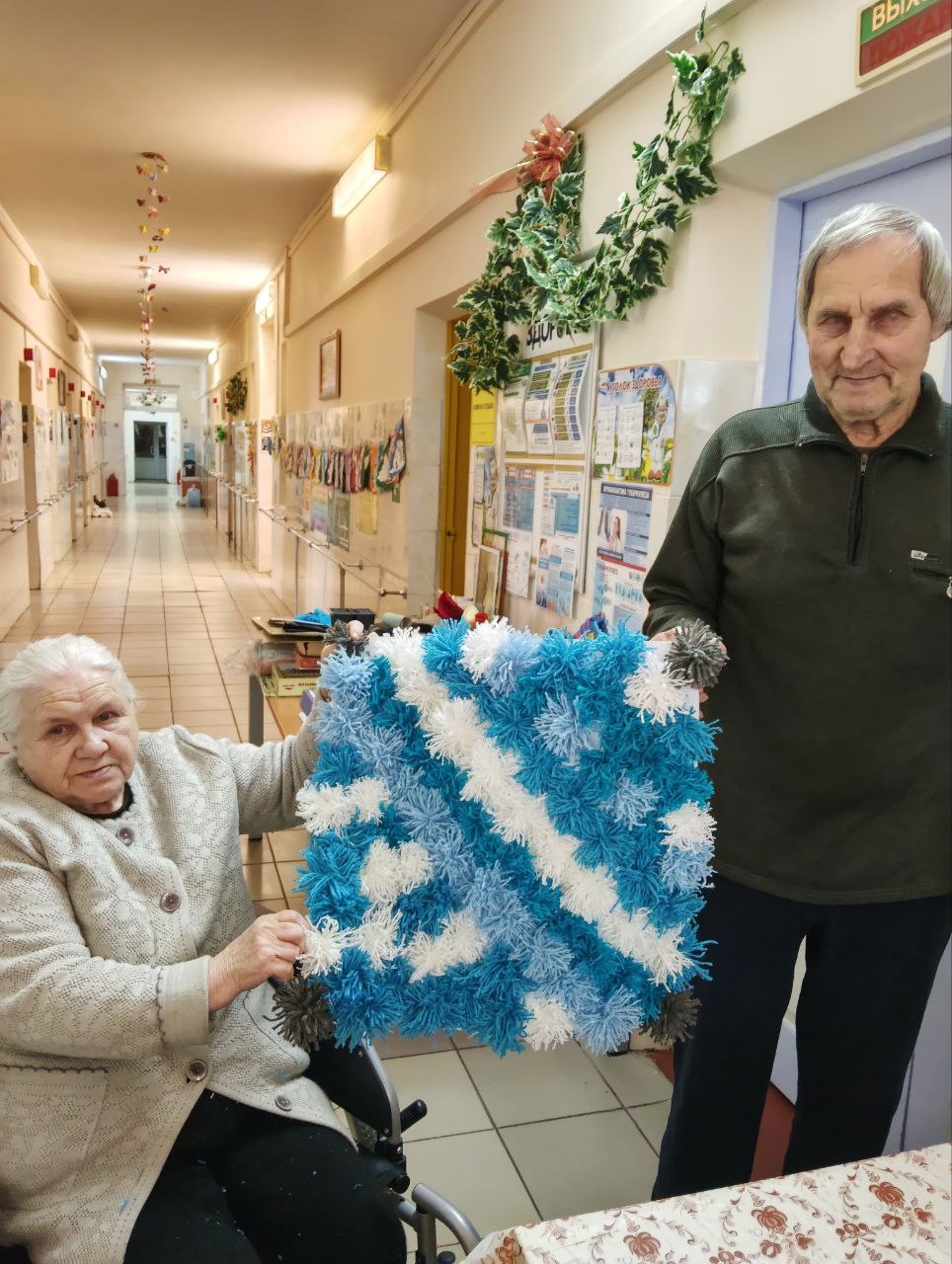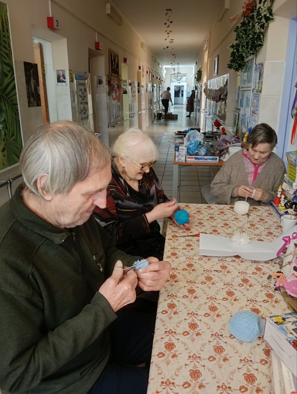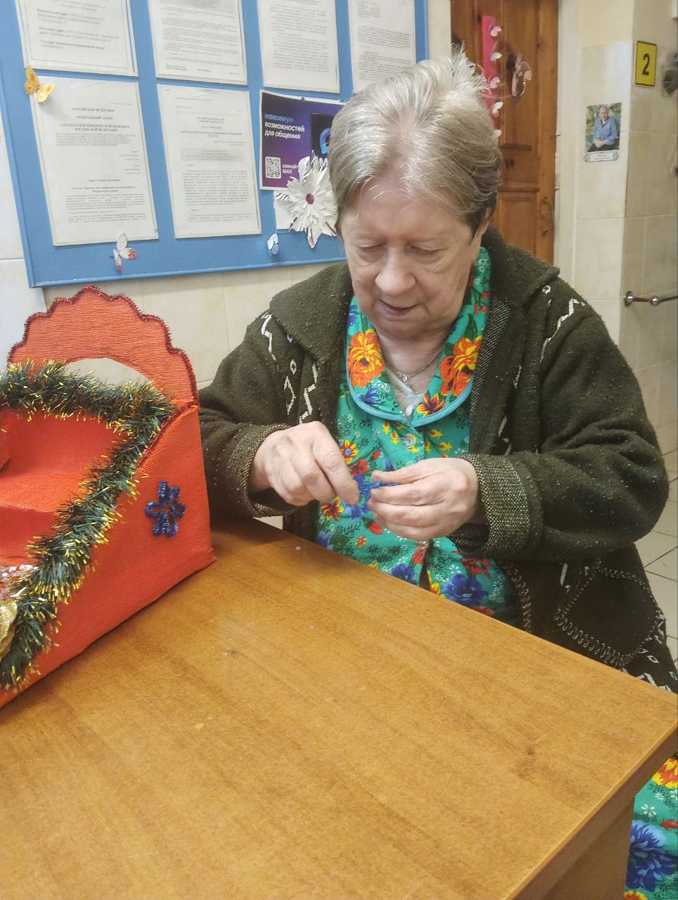 Проживающие в доме-интернате активно участвуют в подготовке к празднику. Они с радостью помогают украшать коридоры и комнаты, развешивают гирлянды и создают новогодние композиции.