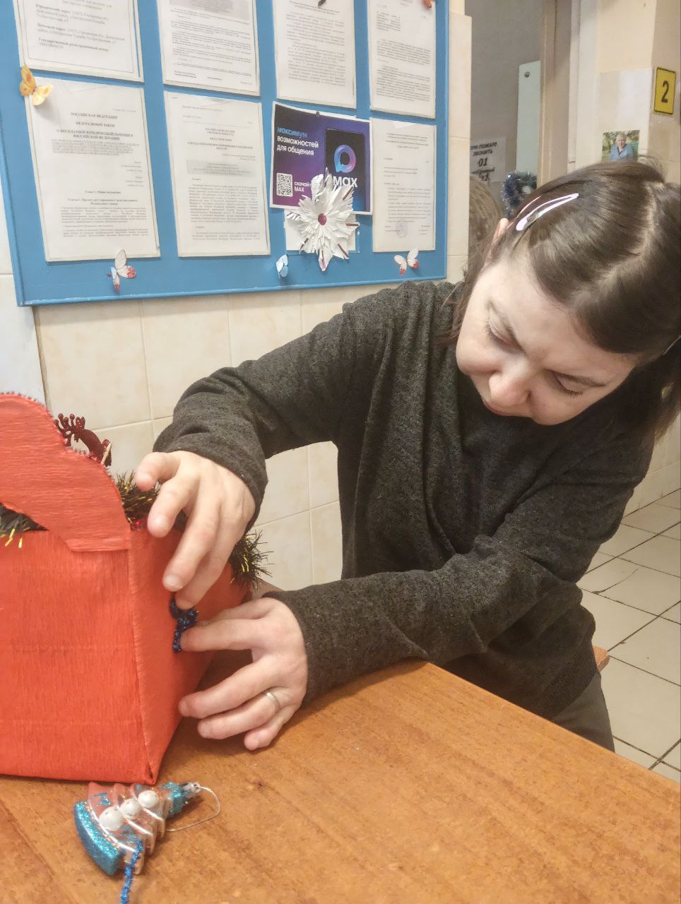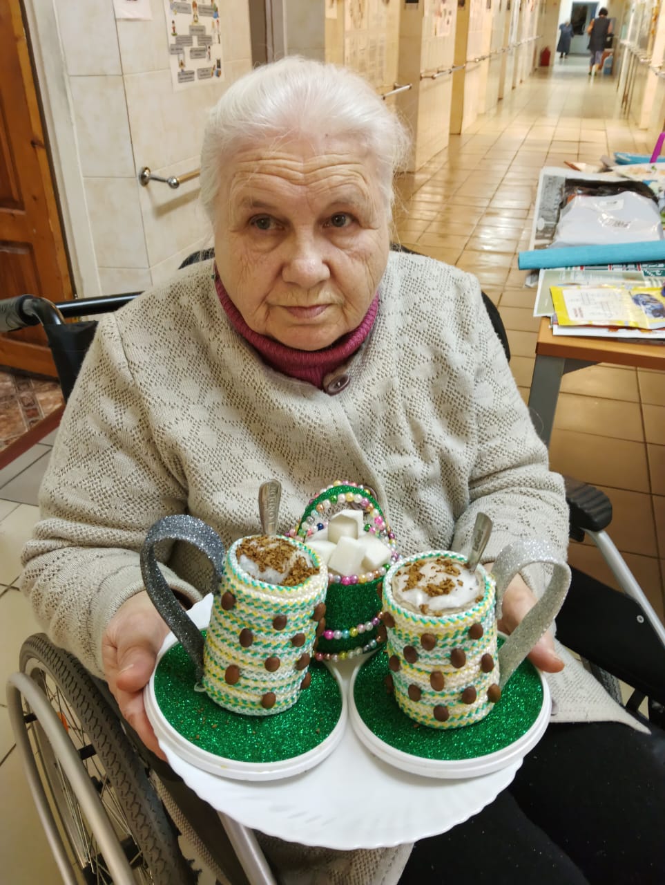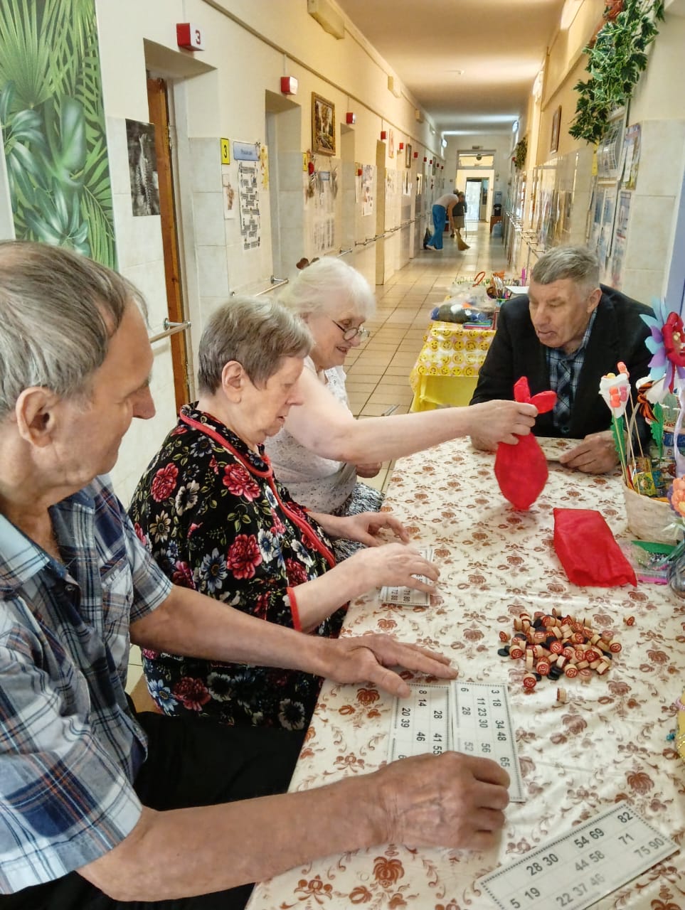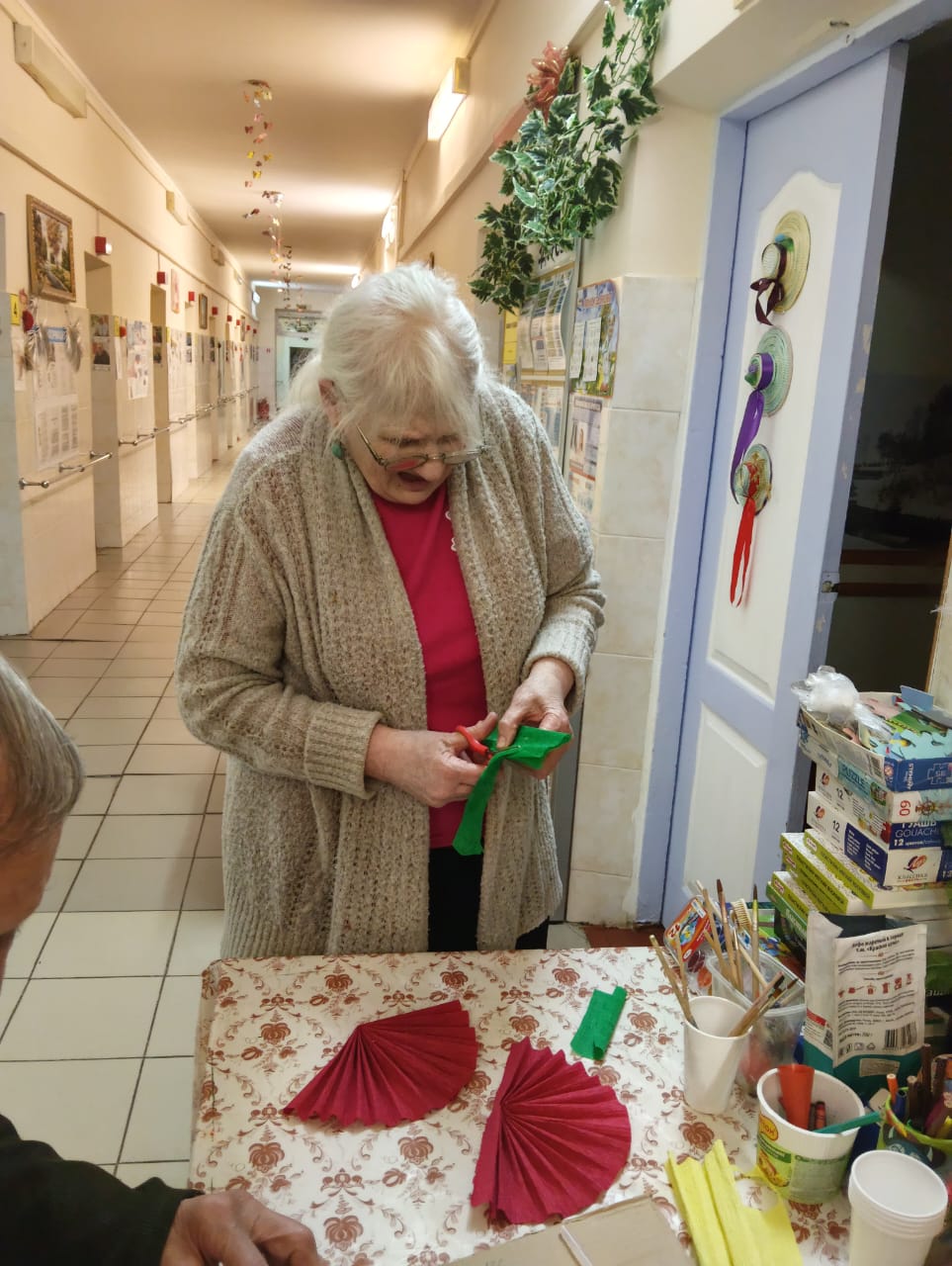 Проживающие в доме-интернате активно участвуют в подготовке к празднику. Они с радостью помогают украшать коридоры и комнаты, развешивают гирлянды и создают новогодние композиции.