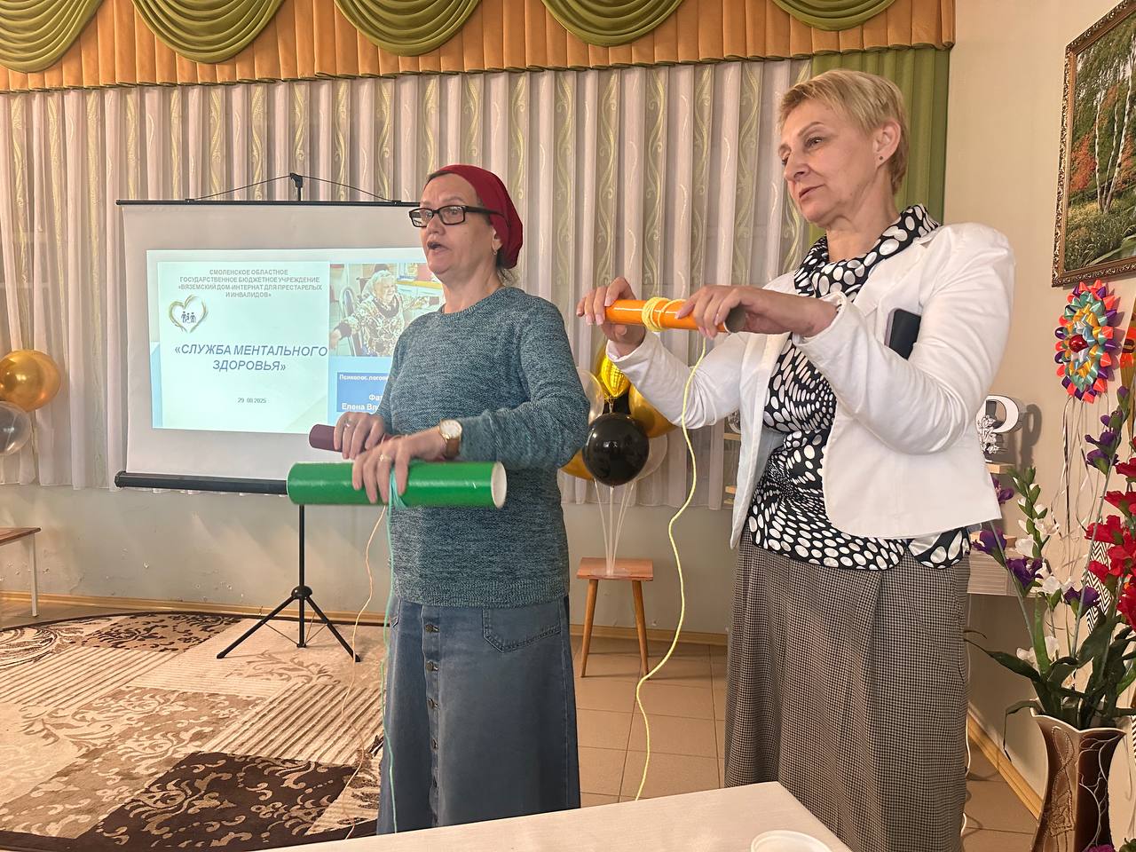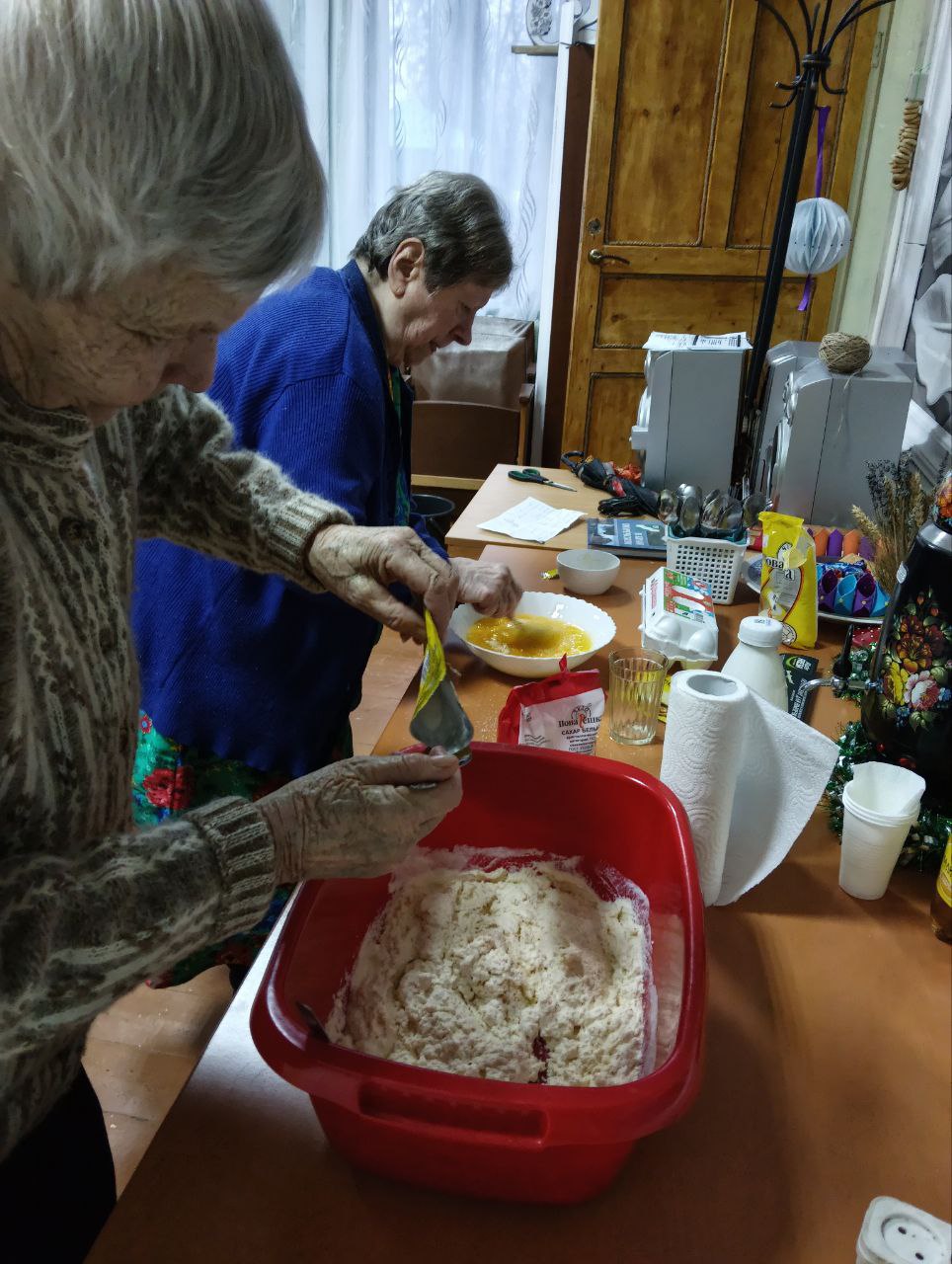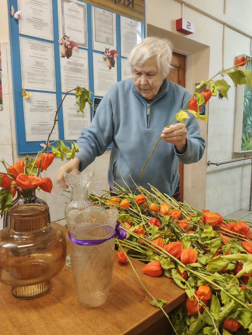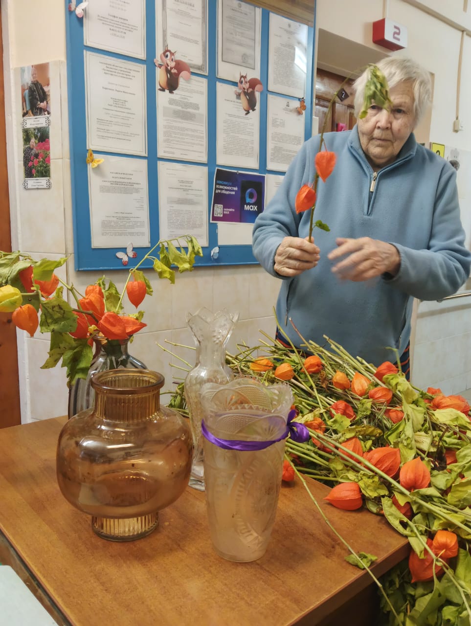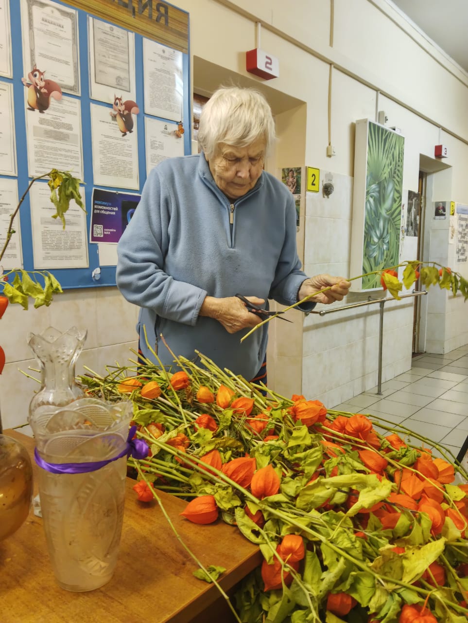 Проживающие в доме-интернате активно участвуют в подготовке к празднику. Они с радостью помогают украшать коридоры и комнаты, развешивают гирлянды и создают новогодние композиции.