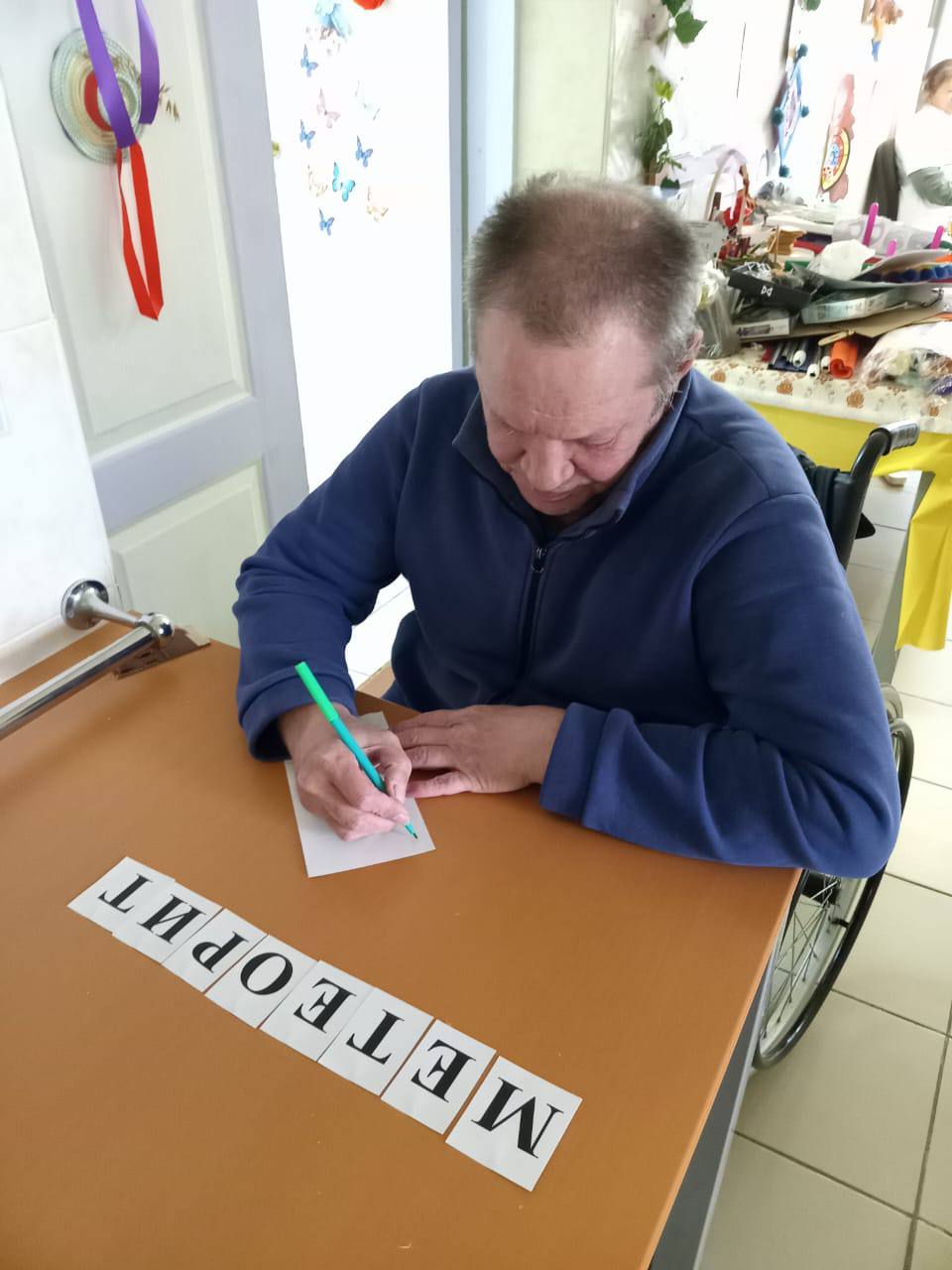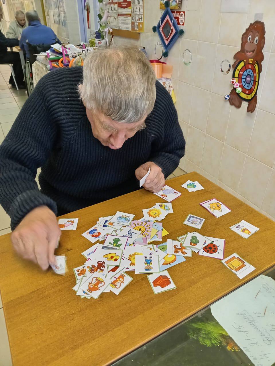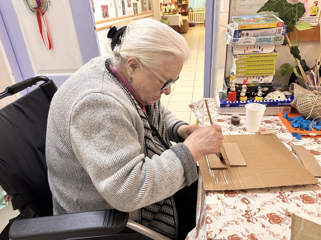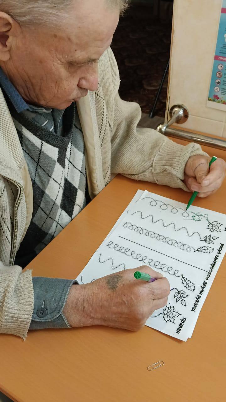 С проживающими Холмовского дома-интерната проводятся различные занятия по развитию мелкой моторики. Эти занятия помогают получателям социальных услуг в расширении кругозора и внимательности.