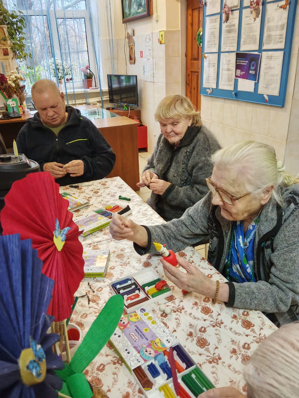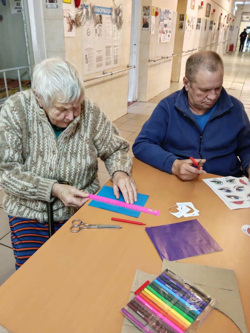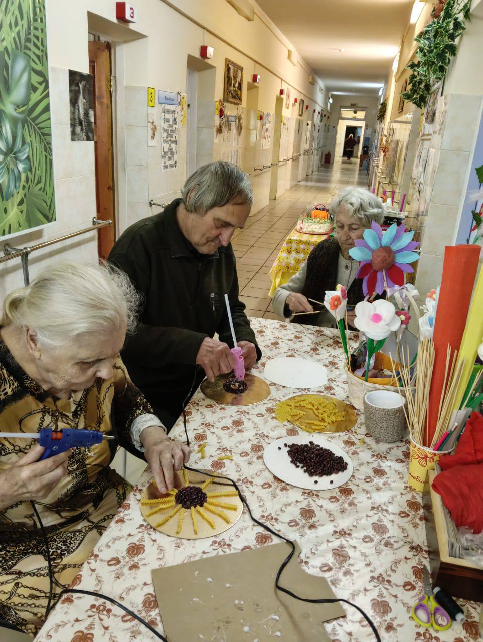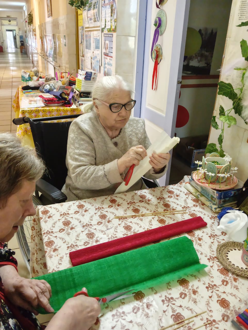 В скором времени на окнах появятся праздничные рисунки и аппликации, выполненные проживающими. Это не только украшает дом-интернат, но и способствует развитию творческих способностей и самовыражению.