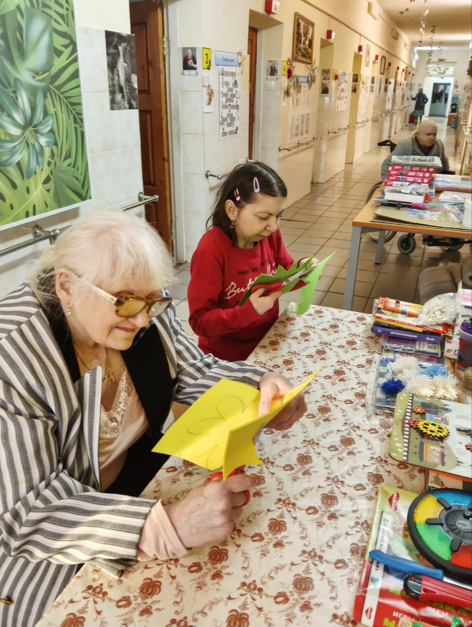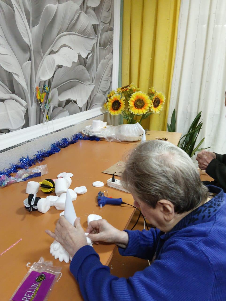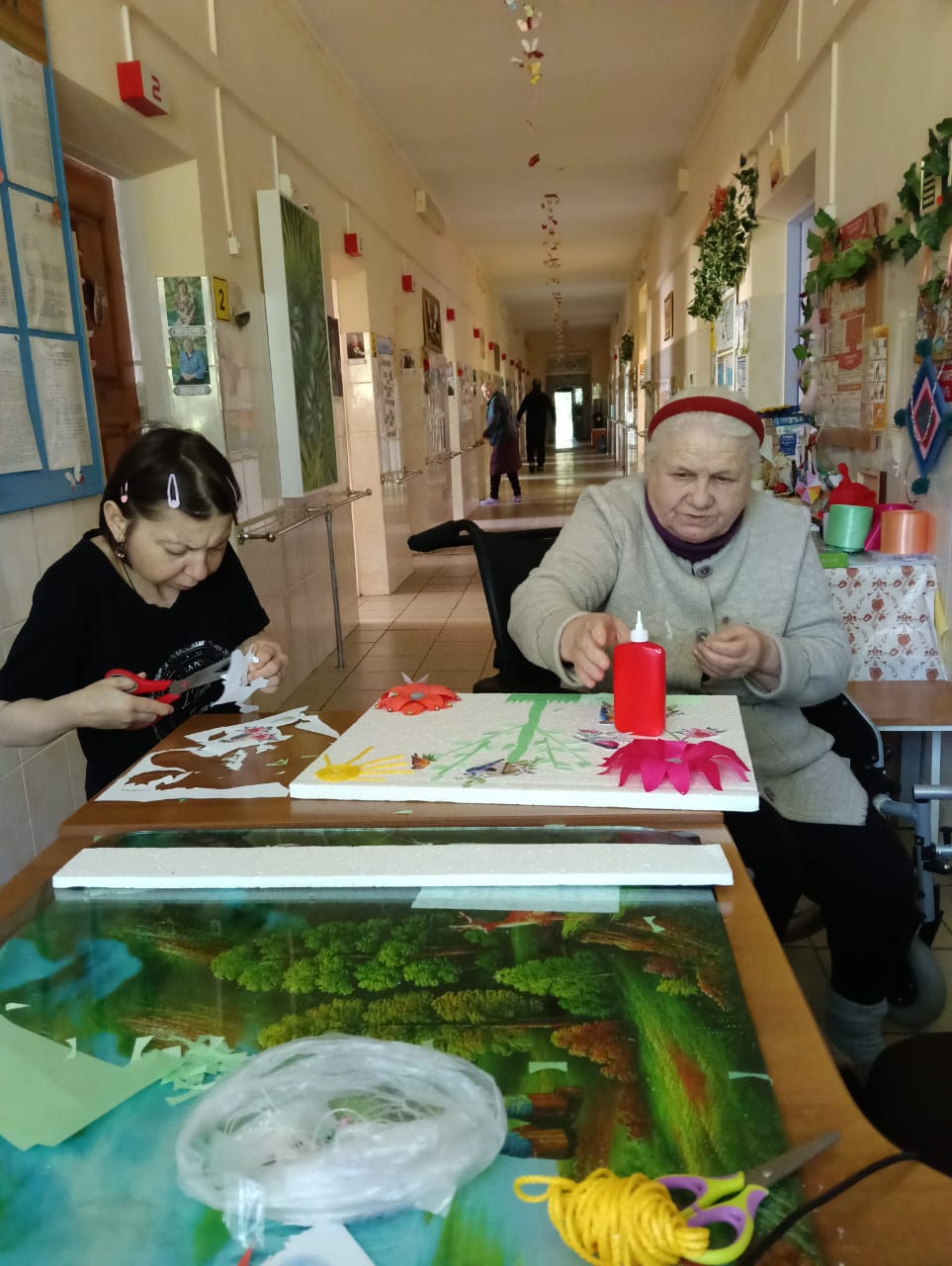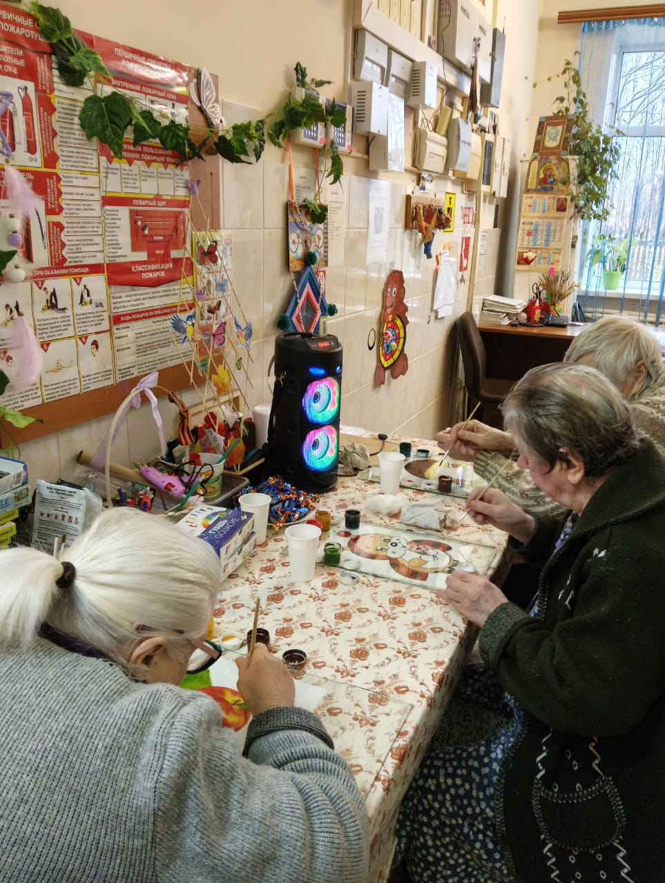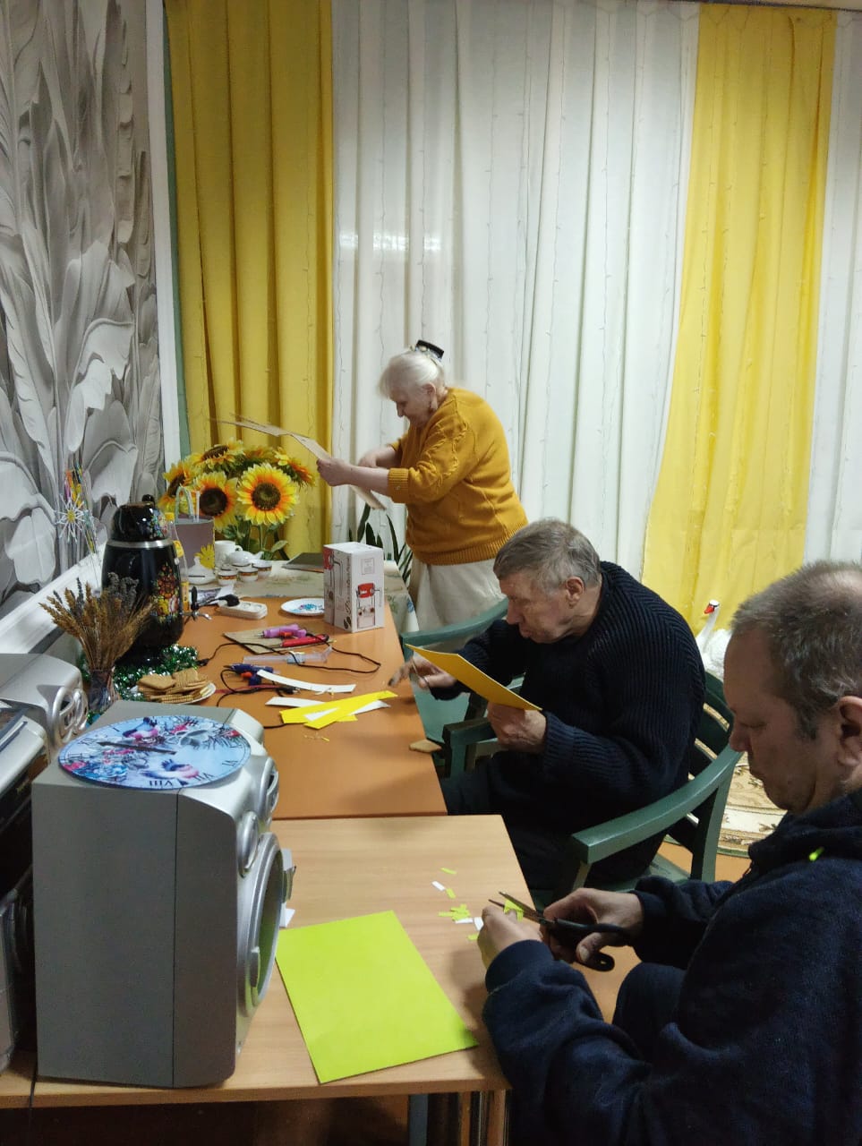 В скором времени на окнах появятся праздничные рисунки и аппликации, выполненные проживающими. Это не только украшает дом-интернат, но и способствует развитию творческих способностей и самовыражению.