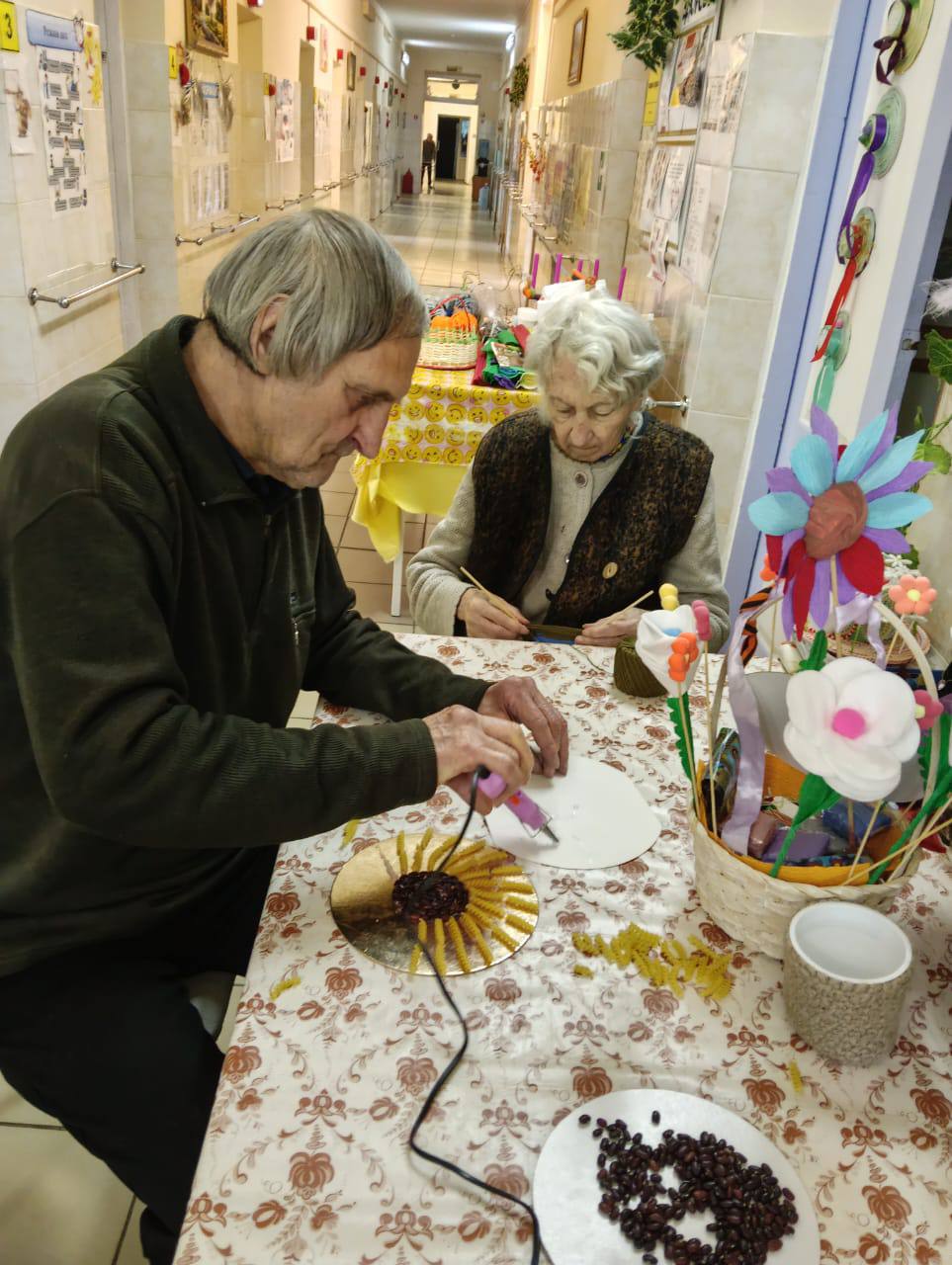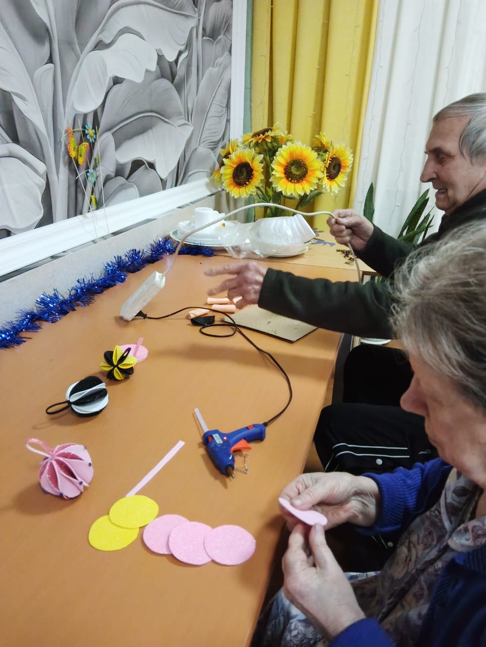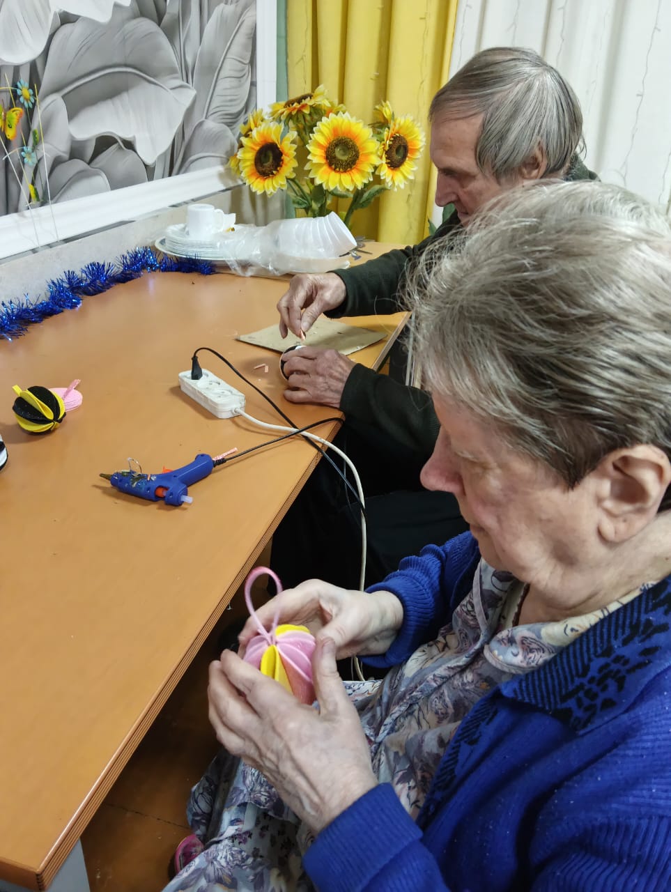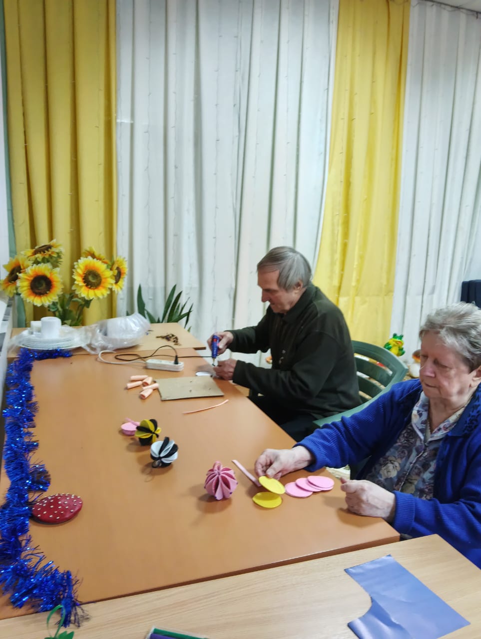 В скором времени на окнах появятся праздничные рисунки и аппликации, выполненные проживающими. Это не только украшает дом-интернат, но и способствует развитию творческих способностей и самовыражению.