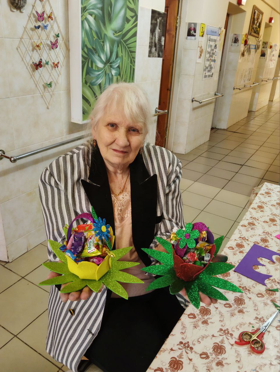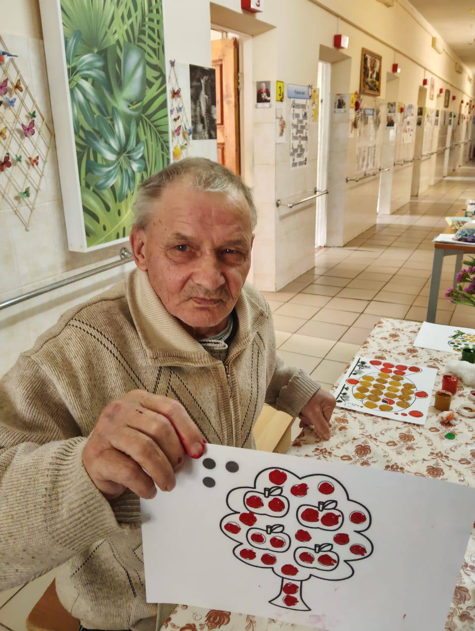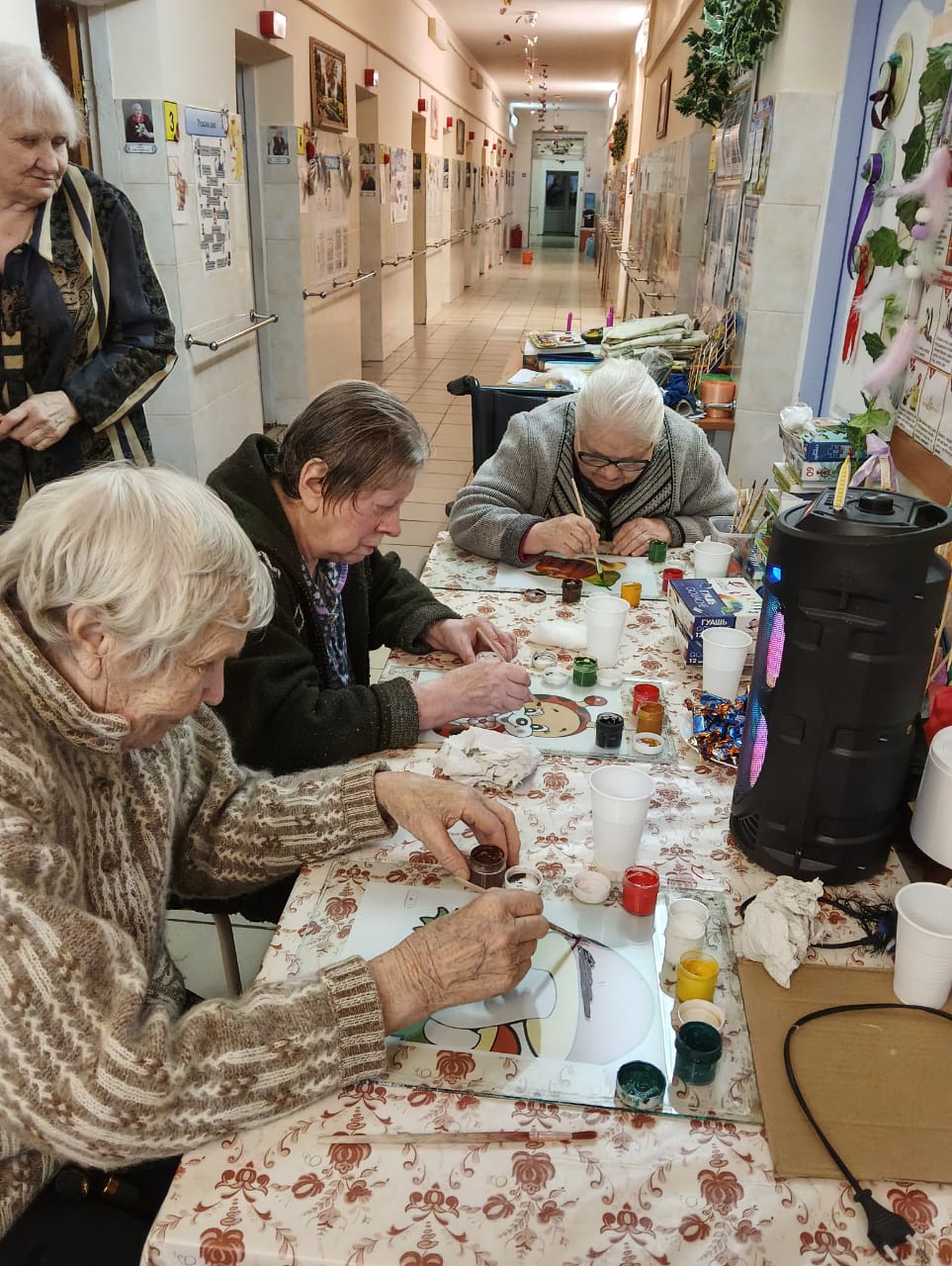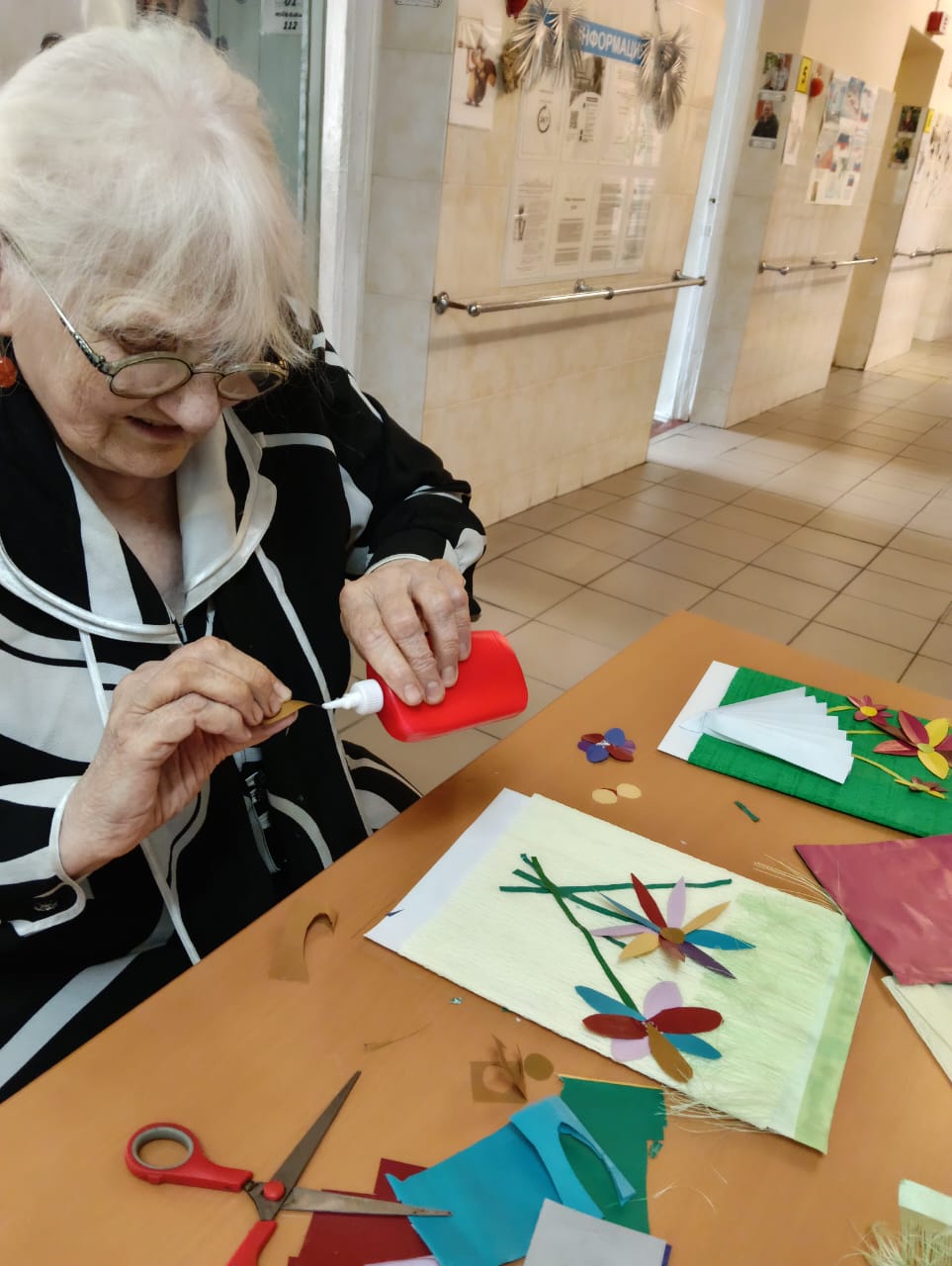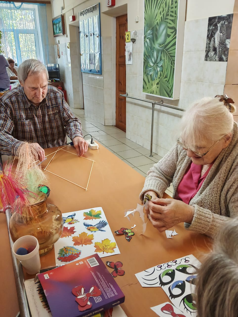 В скором времени на окнах появятся праздничные рисунки и аппликации, выполненные проживающими. Это не только украшает дом-интернат, но и способствует развитию творческих способностей и самовыражению.