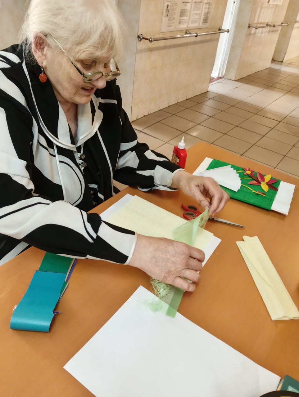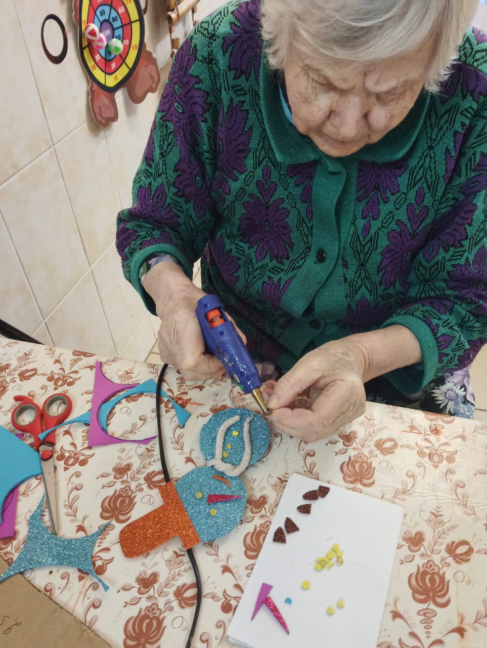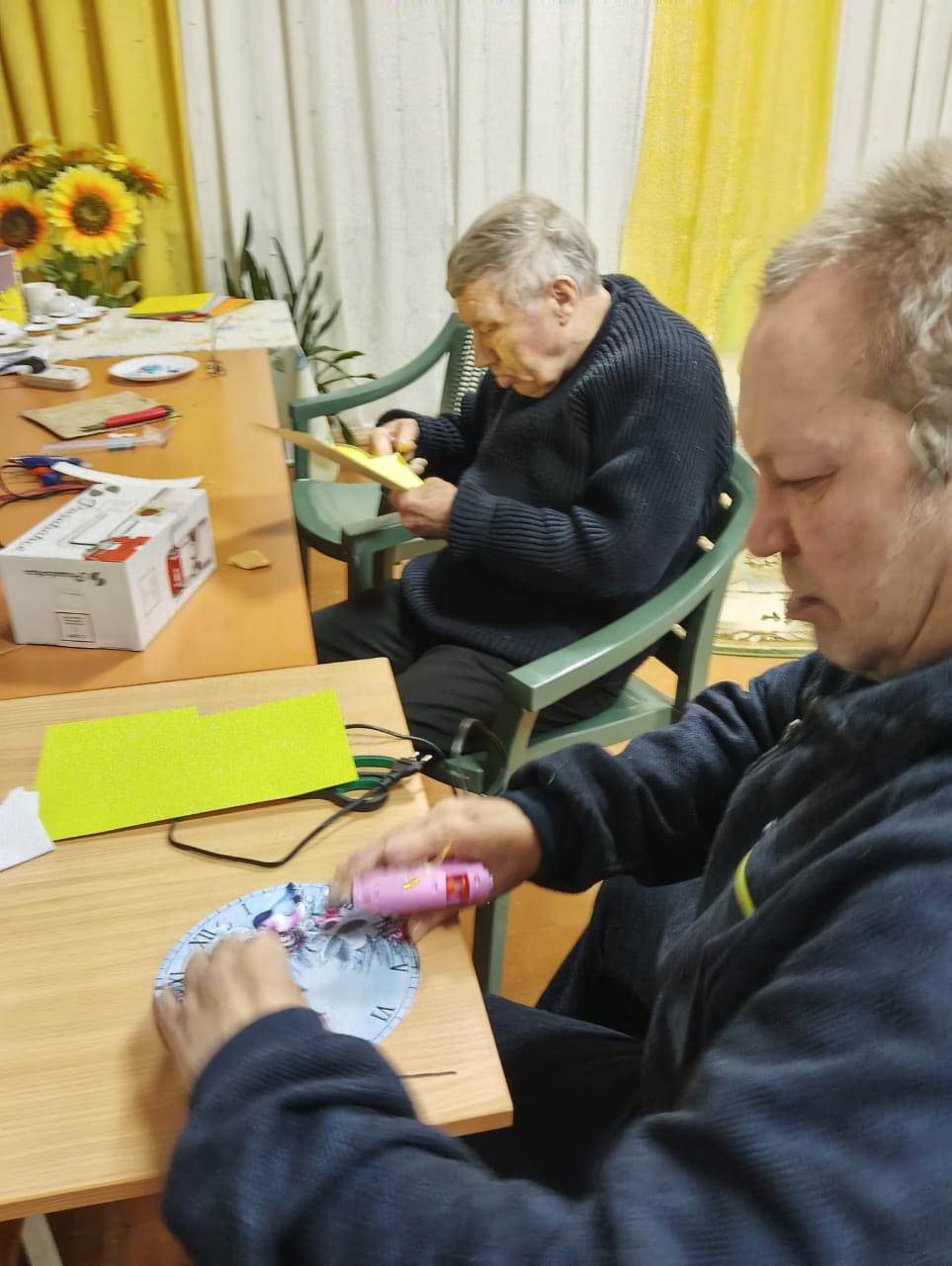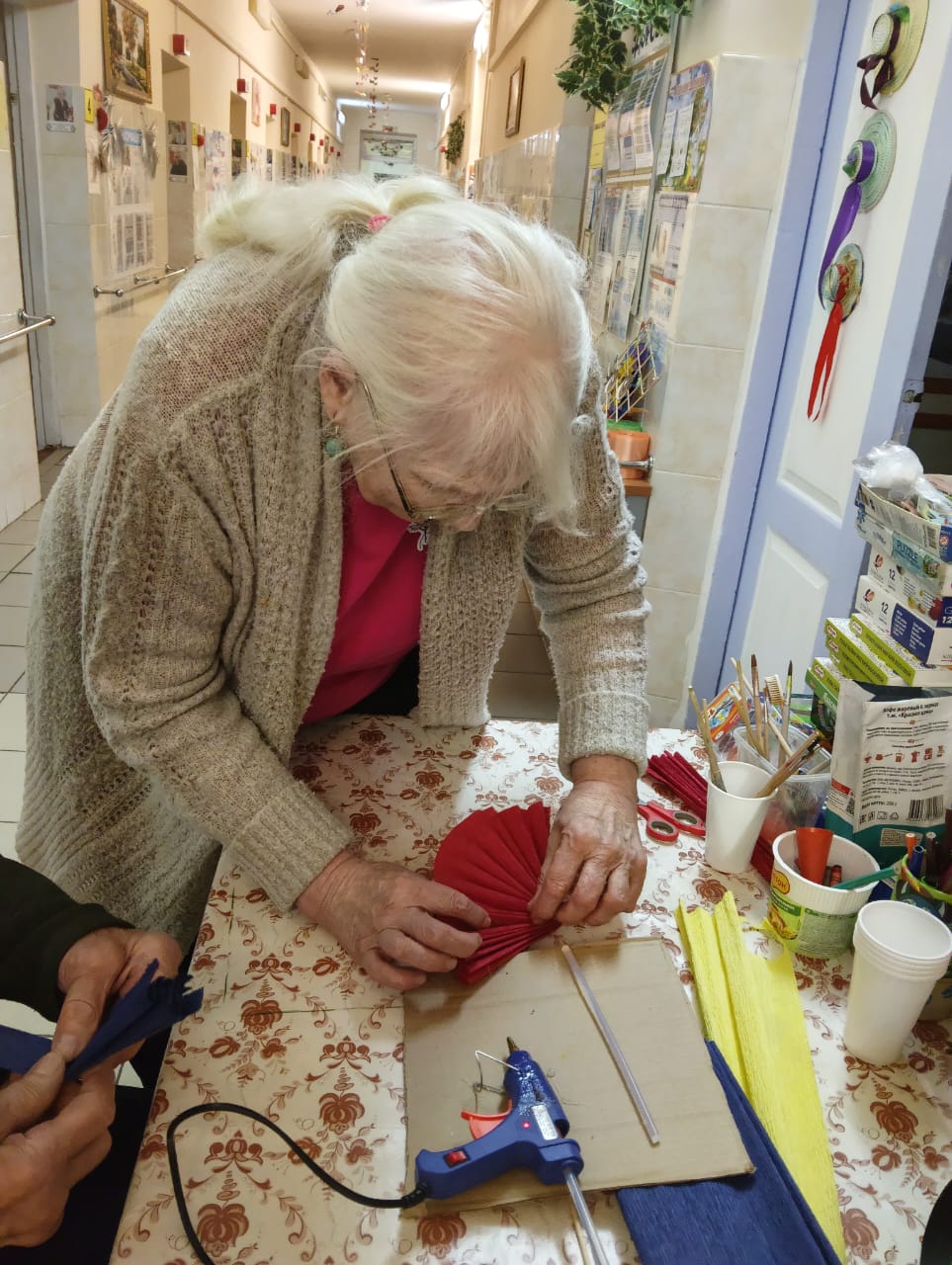 В скором времени на окнах появятся праздничные рисунки и аппликации, выполненные проживающими. Это не только украшает дом-интернат, но и способствует развитию творческих способностей и самовыражению.