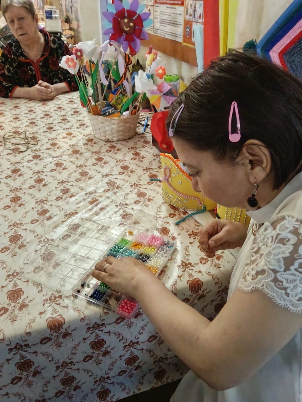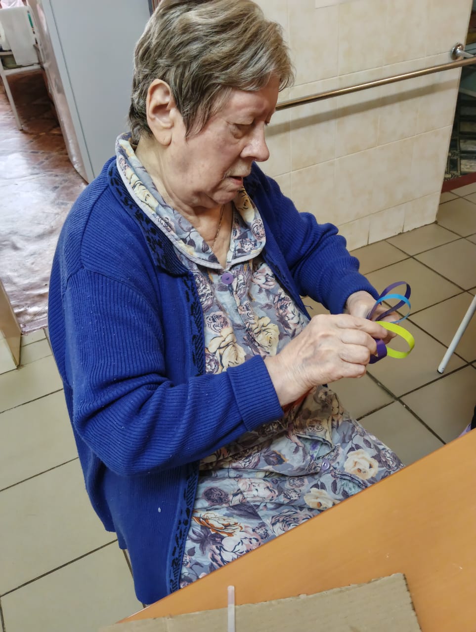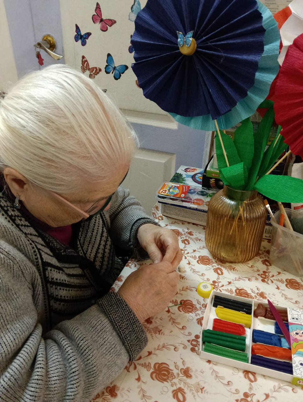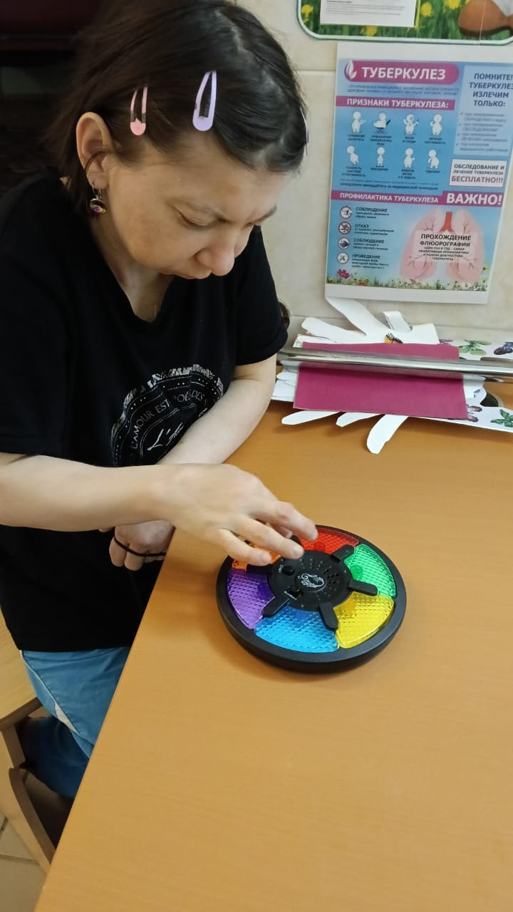 Сегодня прошло индивидуальное занятие с проживающей дома-интерната на развитие мелкой моторики при помощи бисера, который необходимо было разделить по цветам. Благодаря занятию у Клавдии Германовны улучшилось настроение, также появилась улыбка на лице от проделанной работы.