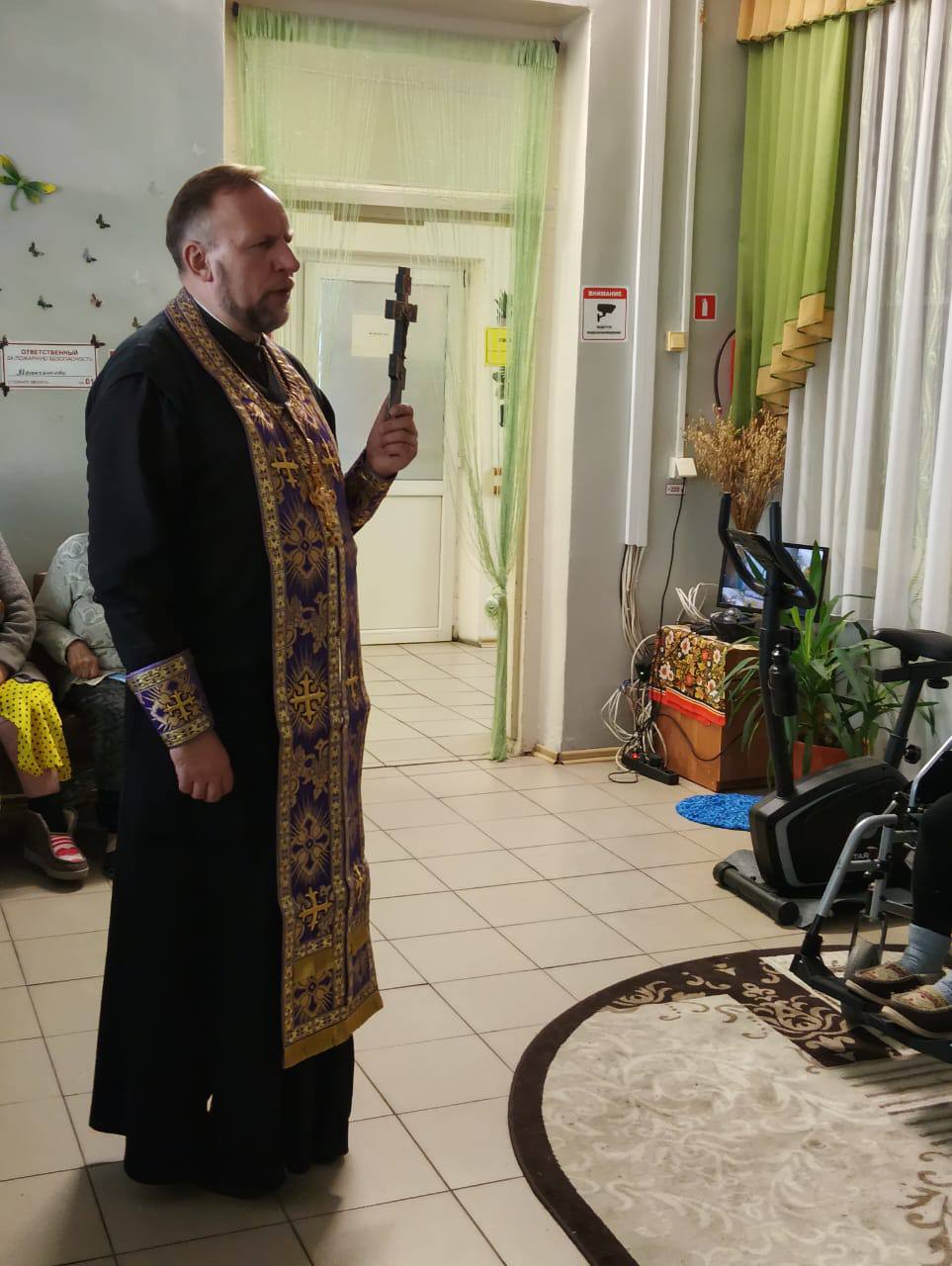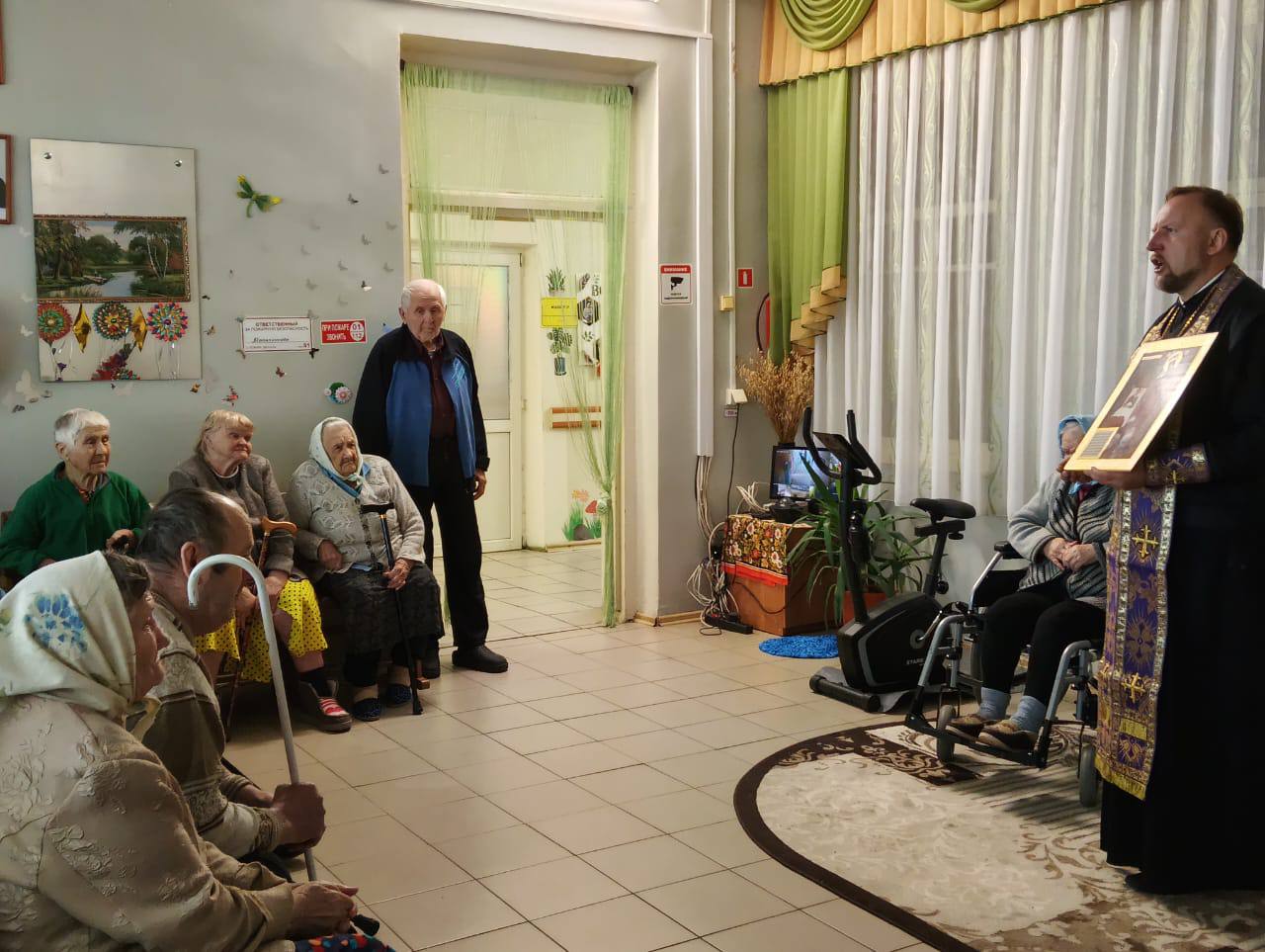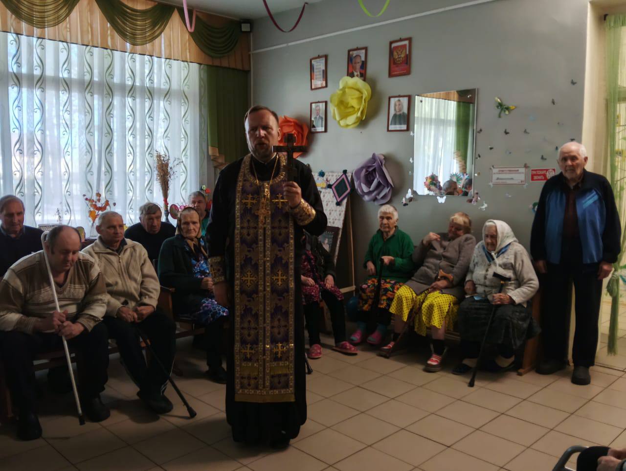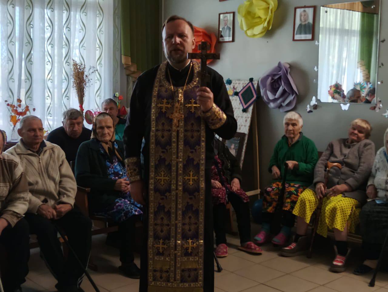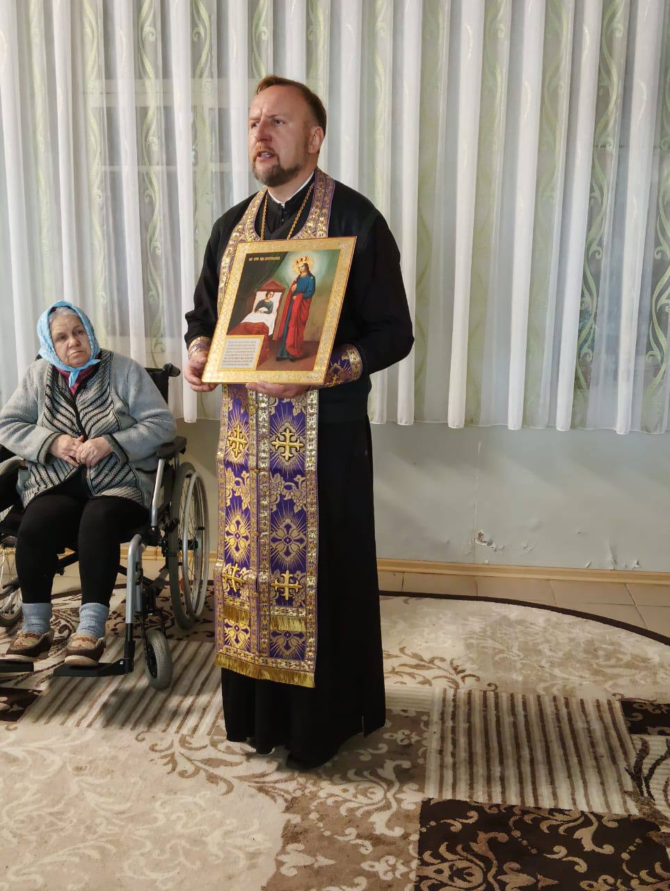 Большинство проживающих Холмовского дома-интерната верующие и православные люди, некоторые из них не имеют возможность посещать храм. Для этого было принято решение приобрести каркас иконостаса, а вот иконы в нем мы установили те, которые были подарены благочинным Демидовского церковного округа протоиереем Александром Мироновым во время его визитов к нам в дом-интернат. Мы обязательно планируем пополнять наш «Уголок верующего» другими иконами.