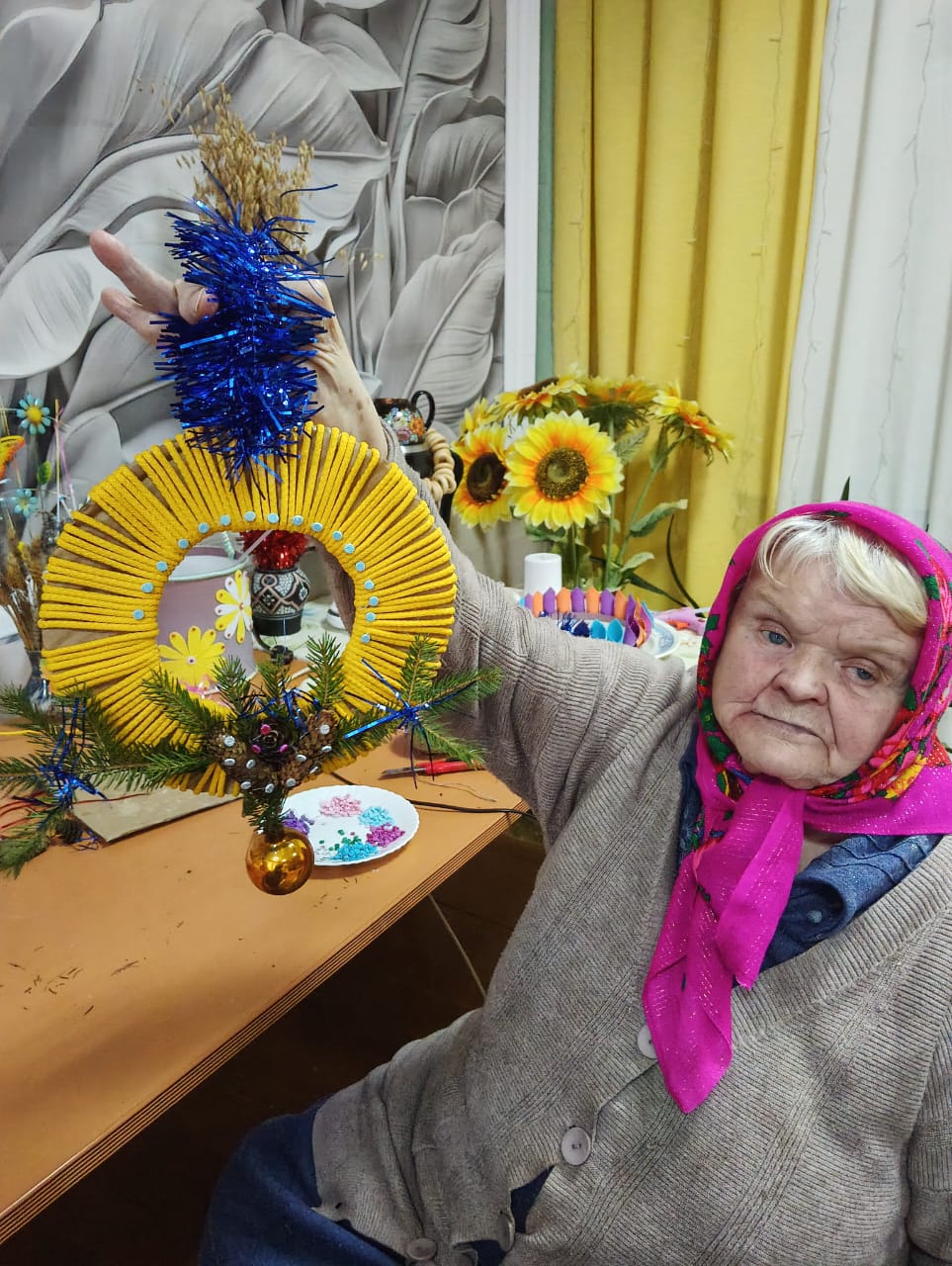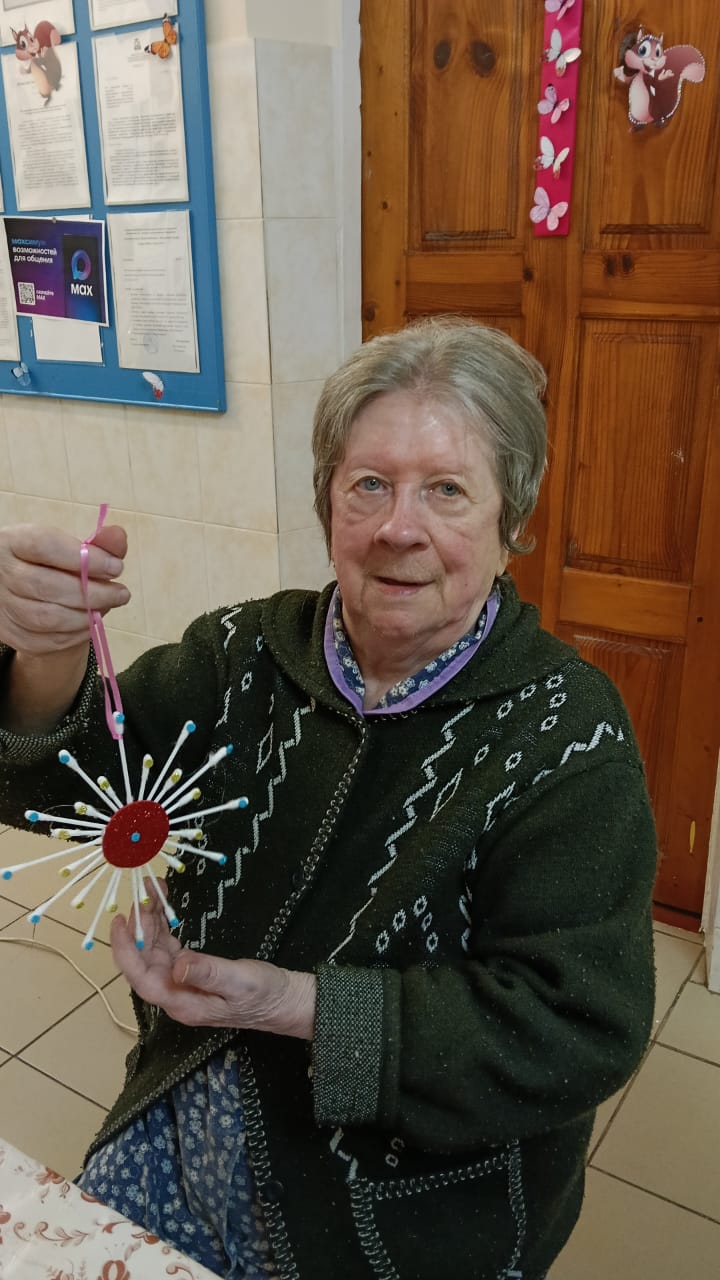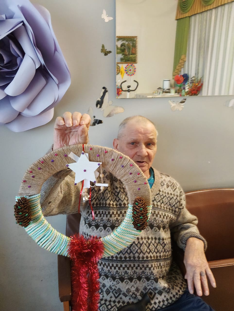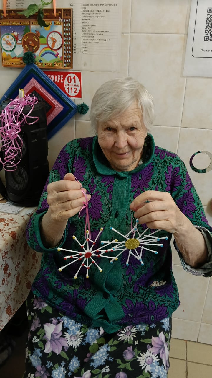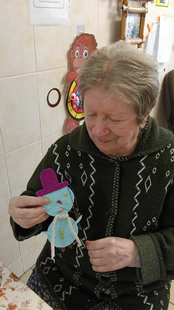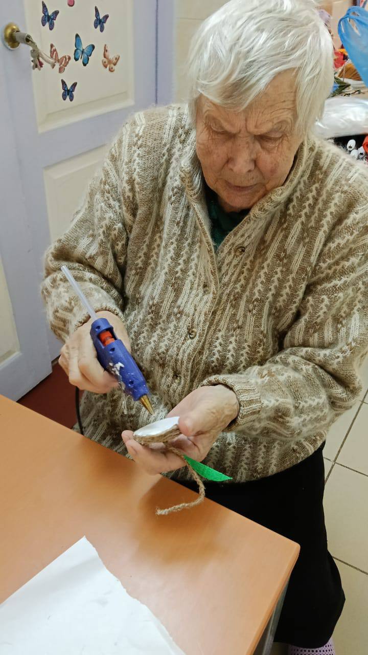 В ходе мастер-класса каждый смог проявить свою креативность, используя различные подручные материалы. Елочные игрушки мастерили из фоамирана, этот материал очень уж полюбился нашим проживающим, а вот рождественский венок — это целое произведение искусства. Для начала была вырезана заготовка, на которую наши мастера постепенно наматывали жгуты, а при украшении венка каждый проявил свою фантазию. В ходе мастер-класса проживающие не только занимались рукоделием, но и вспоминали о теплых моментах, связанных с празднованием Нового года. Они делились историями из своей жизни, смеялись и радовались процессу творчества.