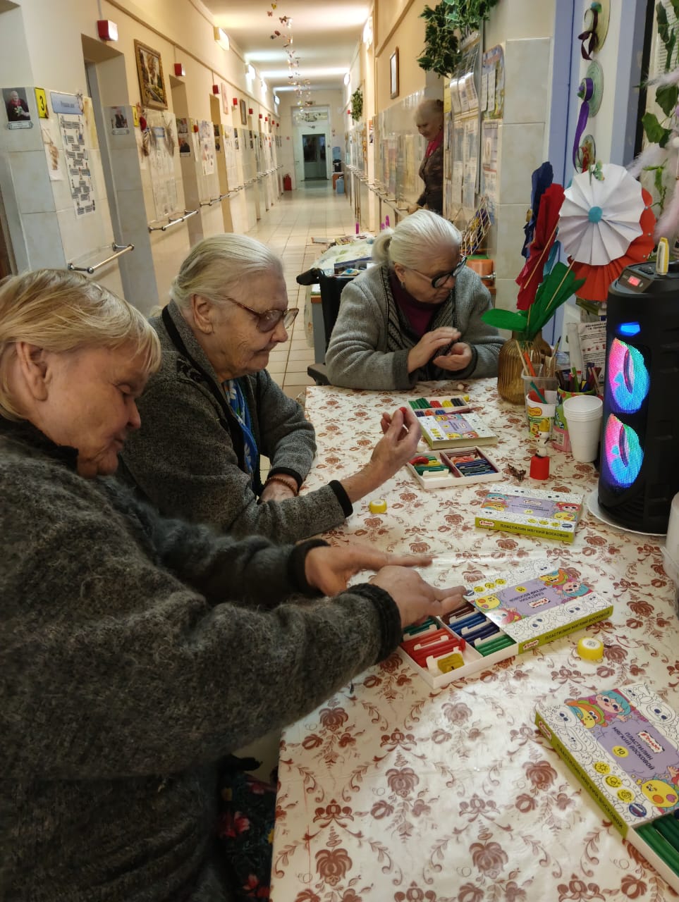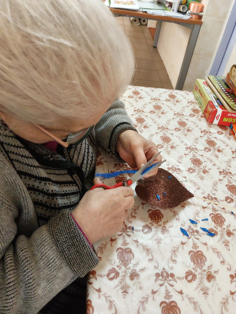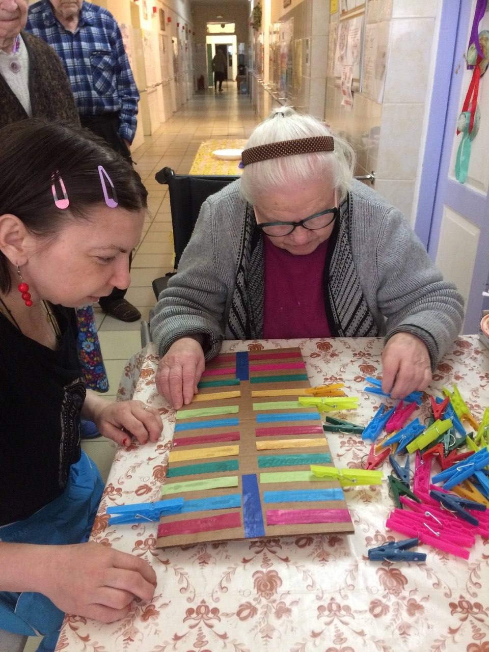 Такие занятия помогают стимулировать процессы активизации мозга, восстановить функции движения верхних конечностей, а также вносят разнообразие в повседневную жизнь получателей социальных услуг.