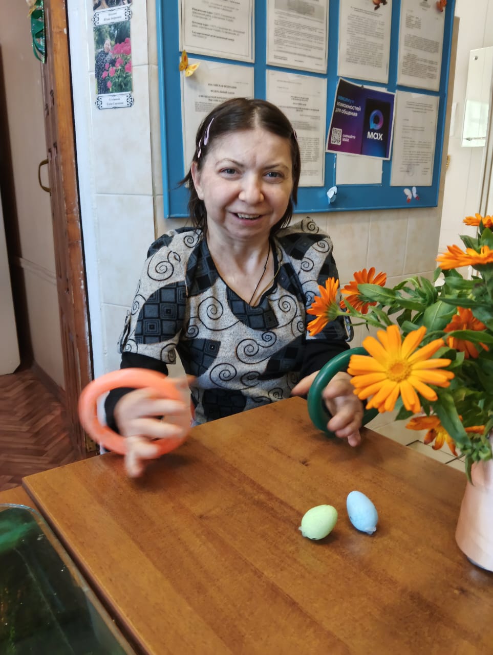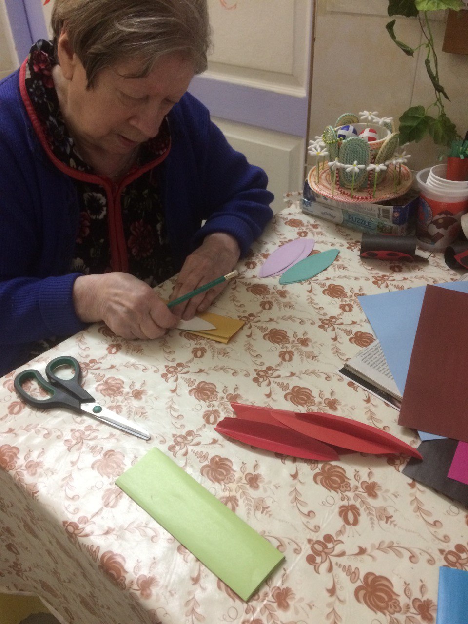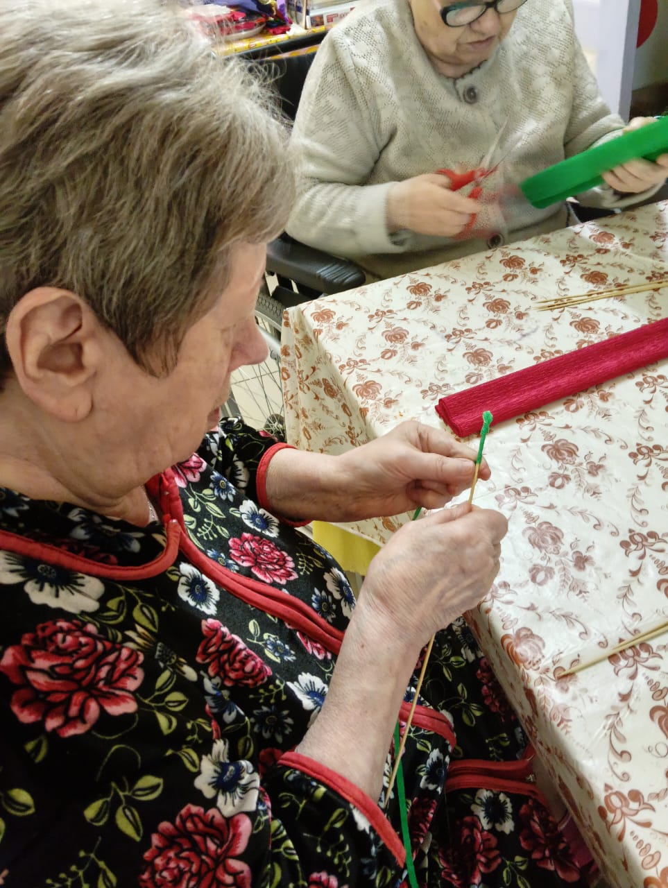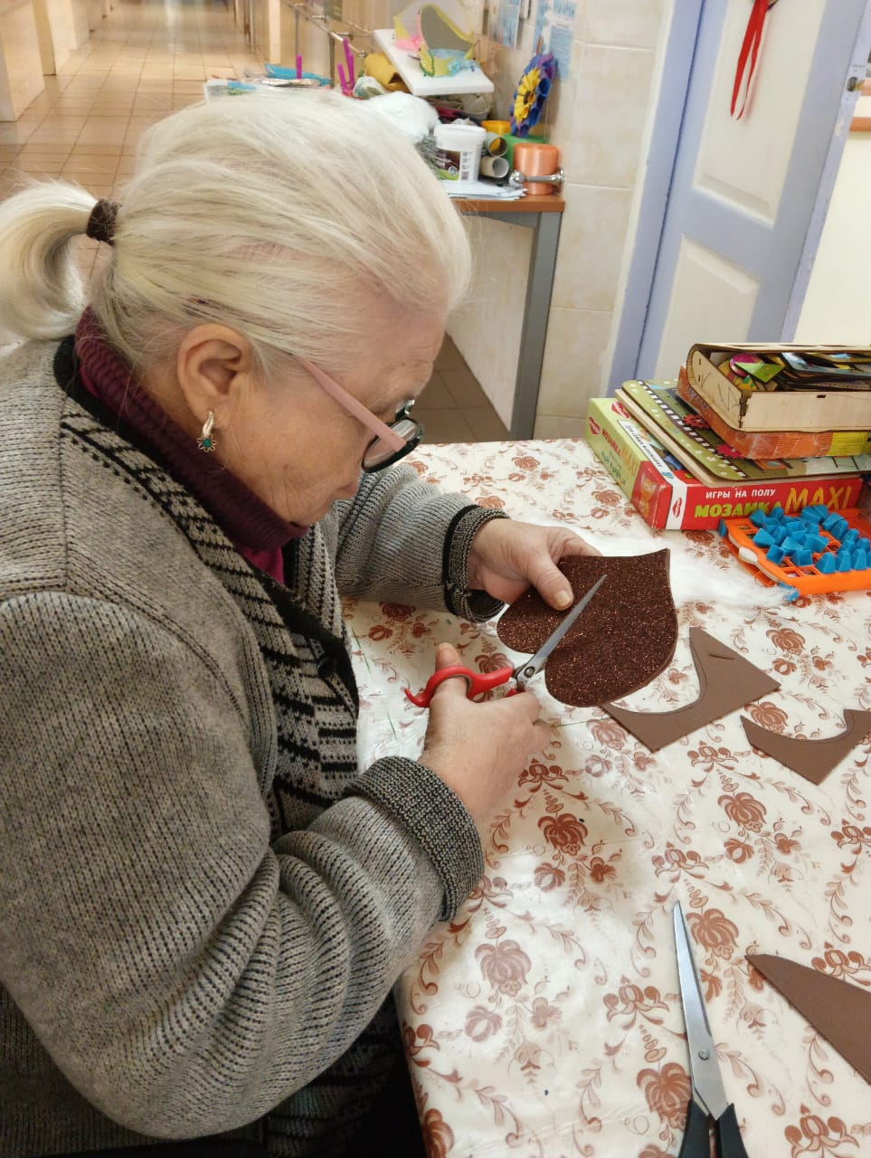 Такие занятия помогают стимулировать процессы активизации мозга, восстановить функции движения верхних конечностей, а также вносят разнообразие в повседневную жизнь получателей социальных услуг.
