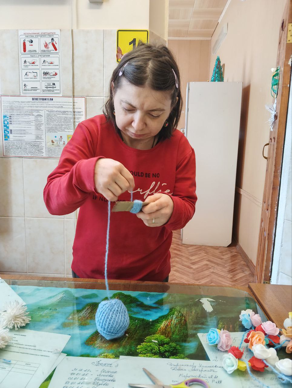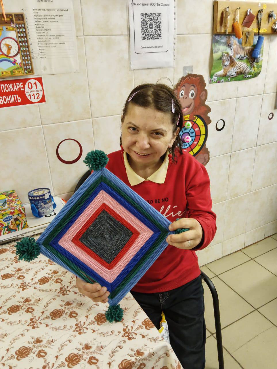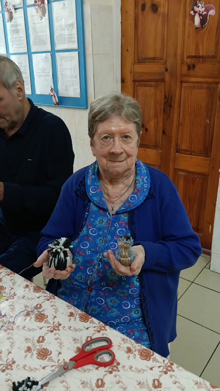 22 декабря для проживающих Холмовского дома-интерната был проведен мастер-класс, на котором было предложено изготовить новогодний коврик из помпонов.