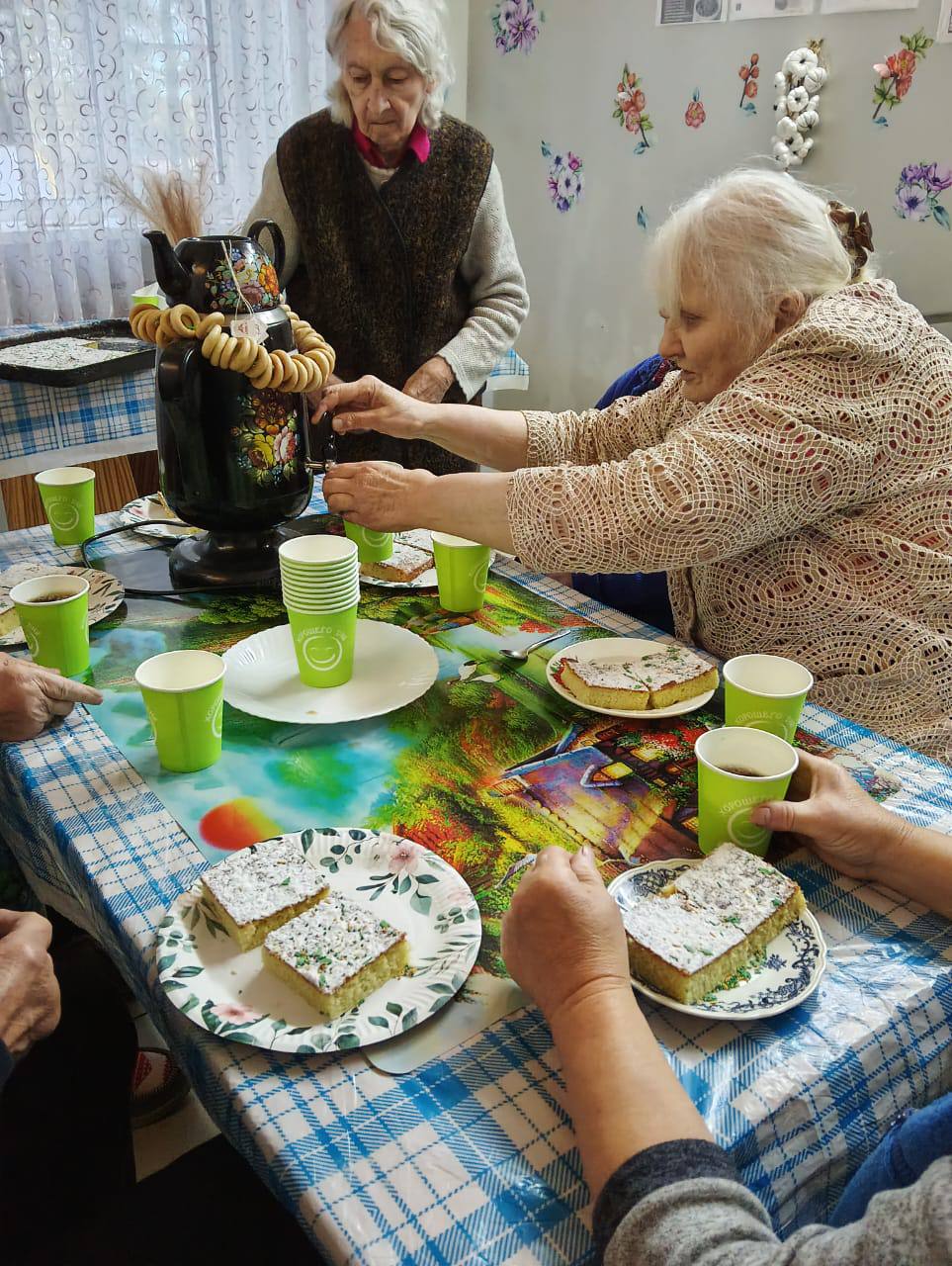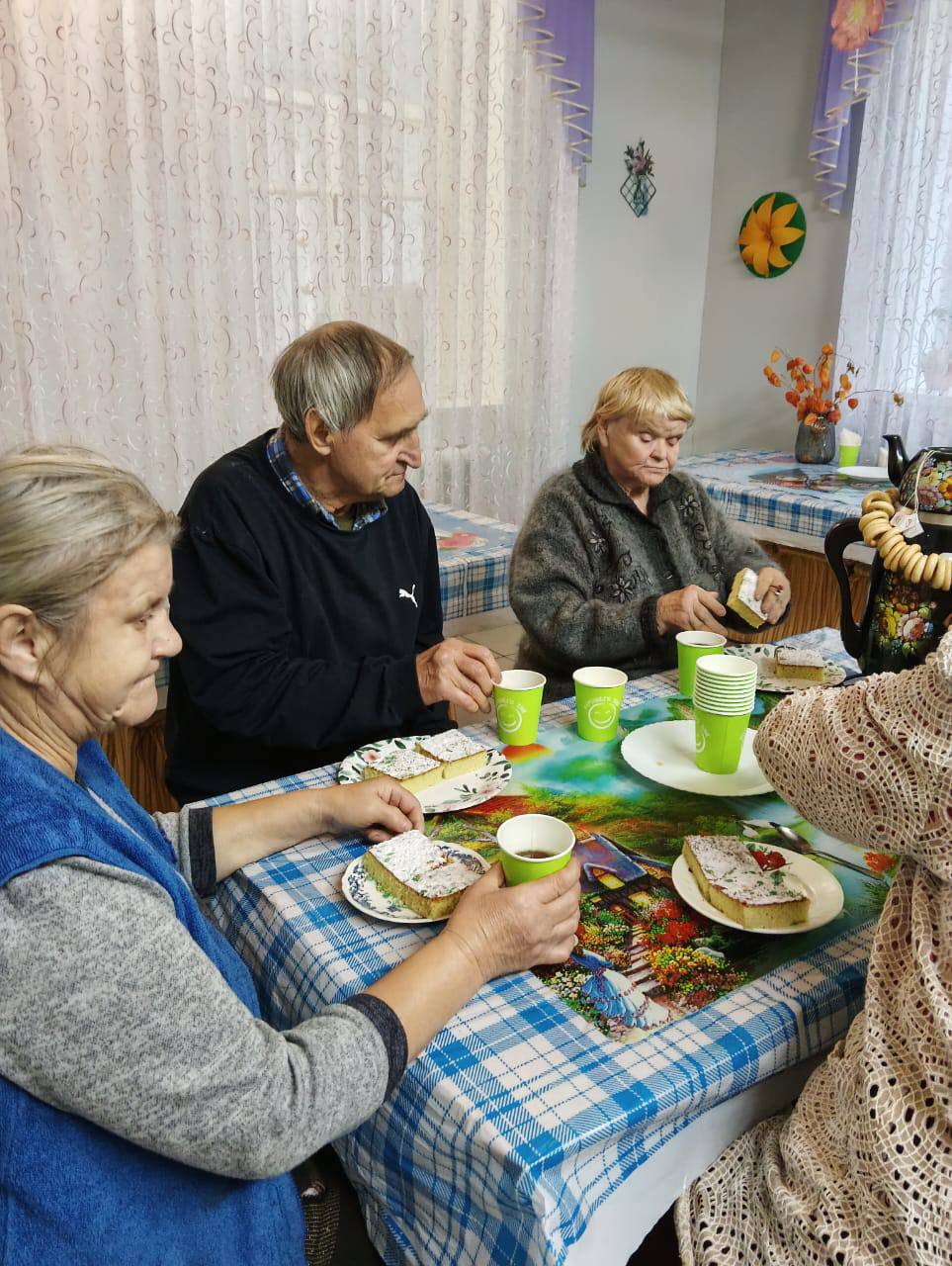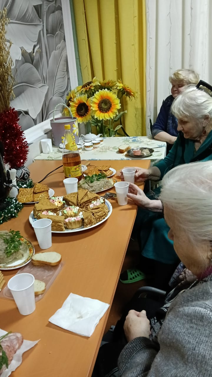03 декабря в СОГБУ «Холмовской дом-интернат для престарелых и инвалидов» состоялось праздничное чаепитие. Бабушки и дедушки пили чай с чебуреками, которые сами приготовили на кулинарном мастер-классе и сладостями, пели песни, вспоминали молодость.