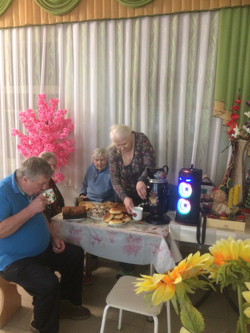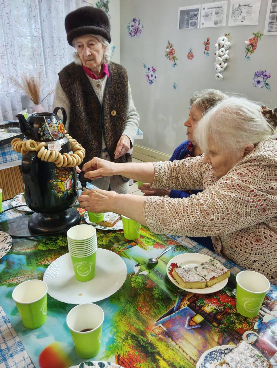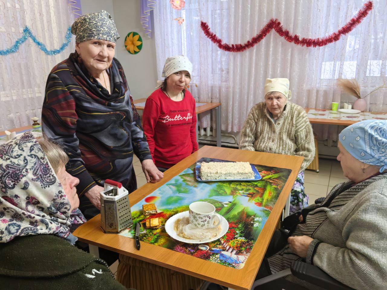 03 декабря в СОГБУ «Холмовской дом-интернат для престарелых и инвалидов» состоялось праздничное чаепитие. Бабушки и дедушки пили чай с чебуреками, которые сами приготовили на кулинарном мастер-классе и сладостями, пели песни, вспоминали молодость.