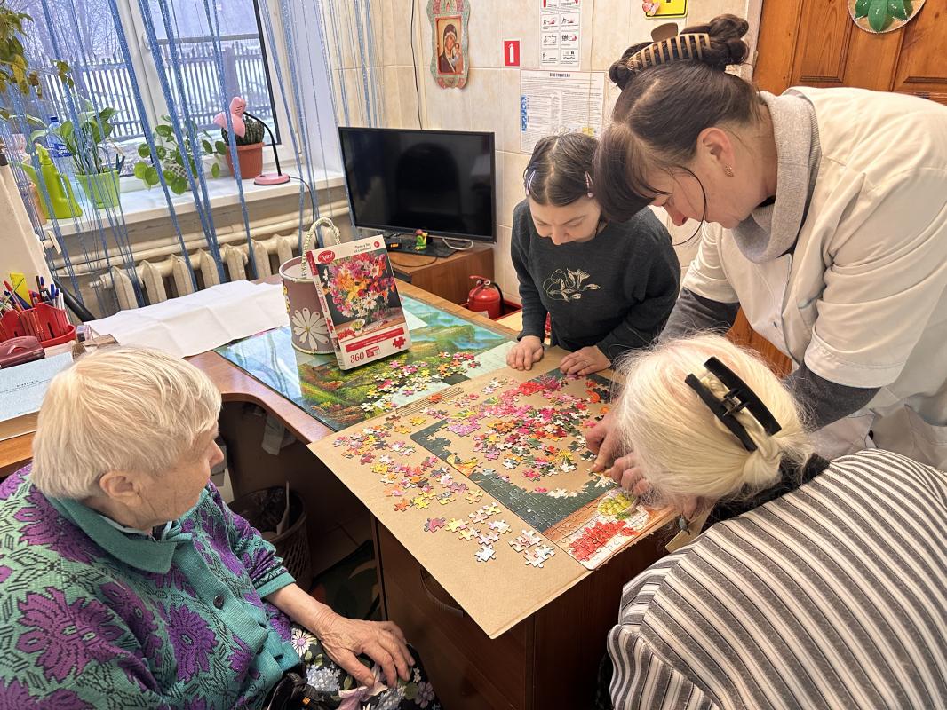 Популярность такого развлечения в последнее время только возрастает среди подопечных Холмовского дома-интерната для престарелых и инвалидов. И это неудивительно, ведь пазл - это тайна, которую так и хочется разгадать. К тому же занятия пазлами не только интересны, но и полезны, потому что не позволяют мозгу «застаиваться».