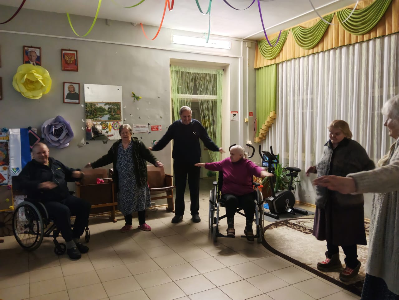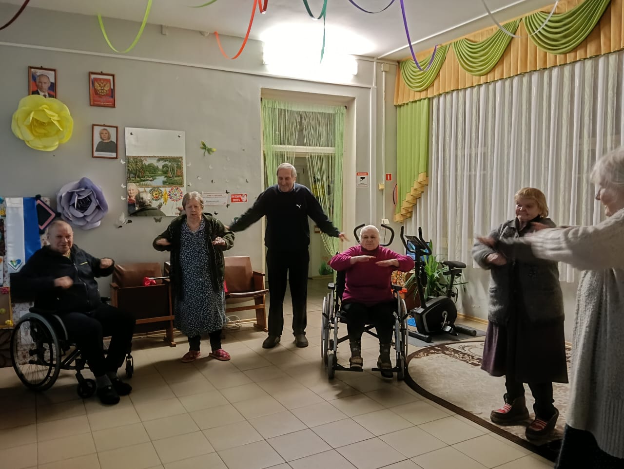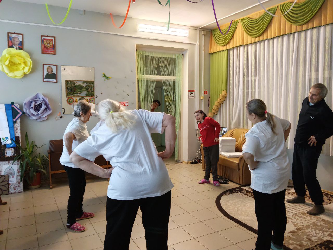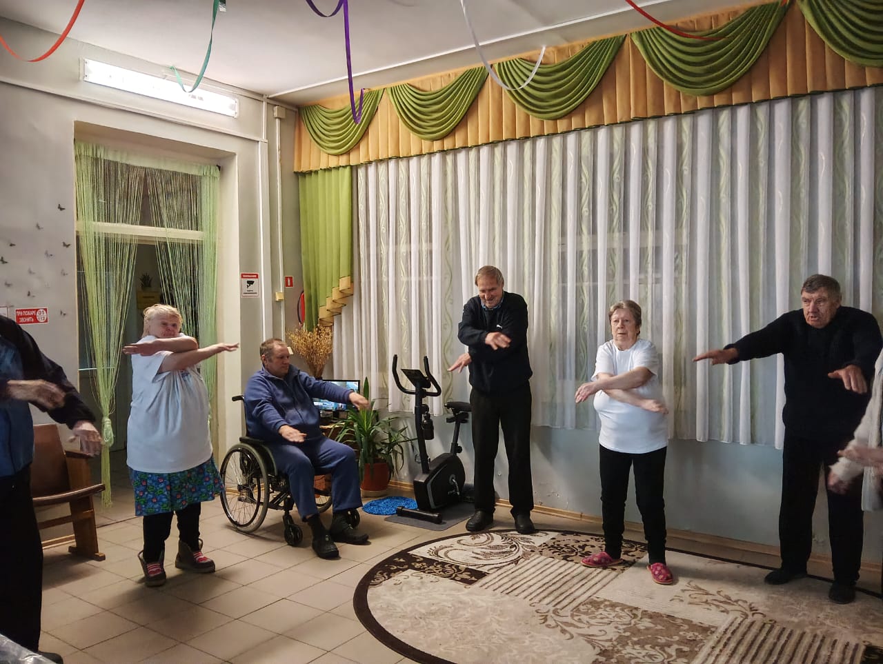 Утренняя зарядка в Холмовском доме-интернате