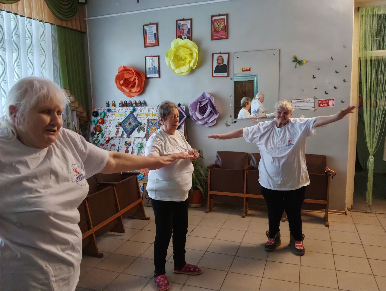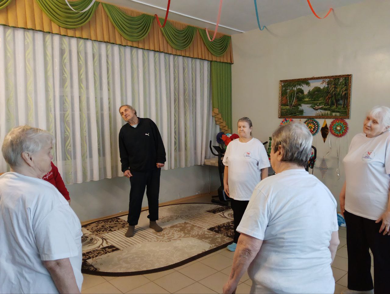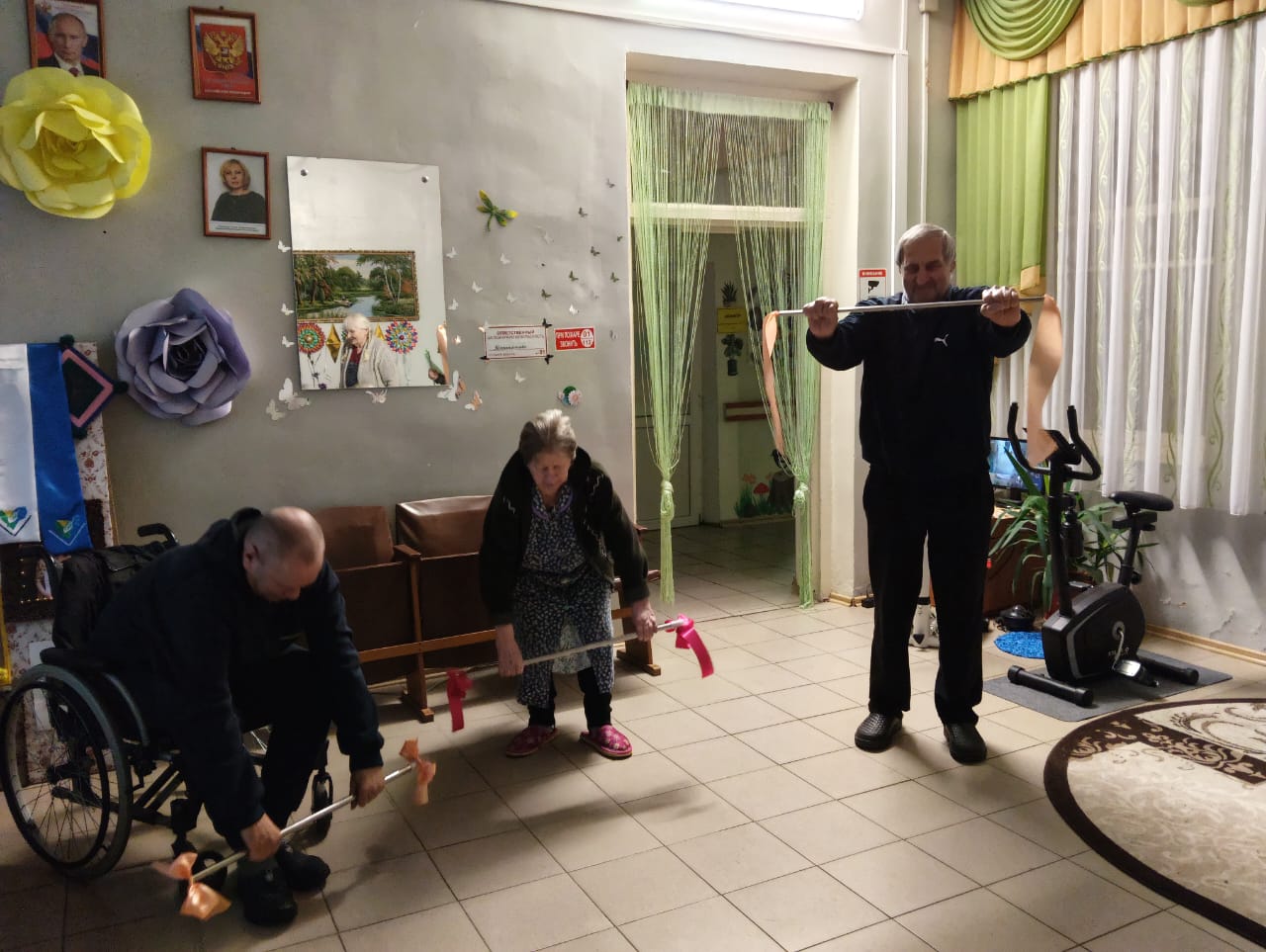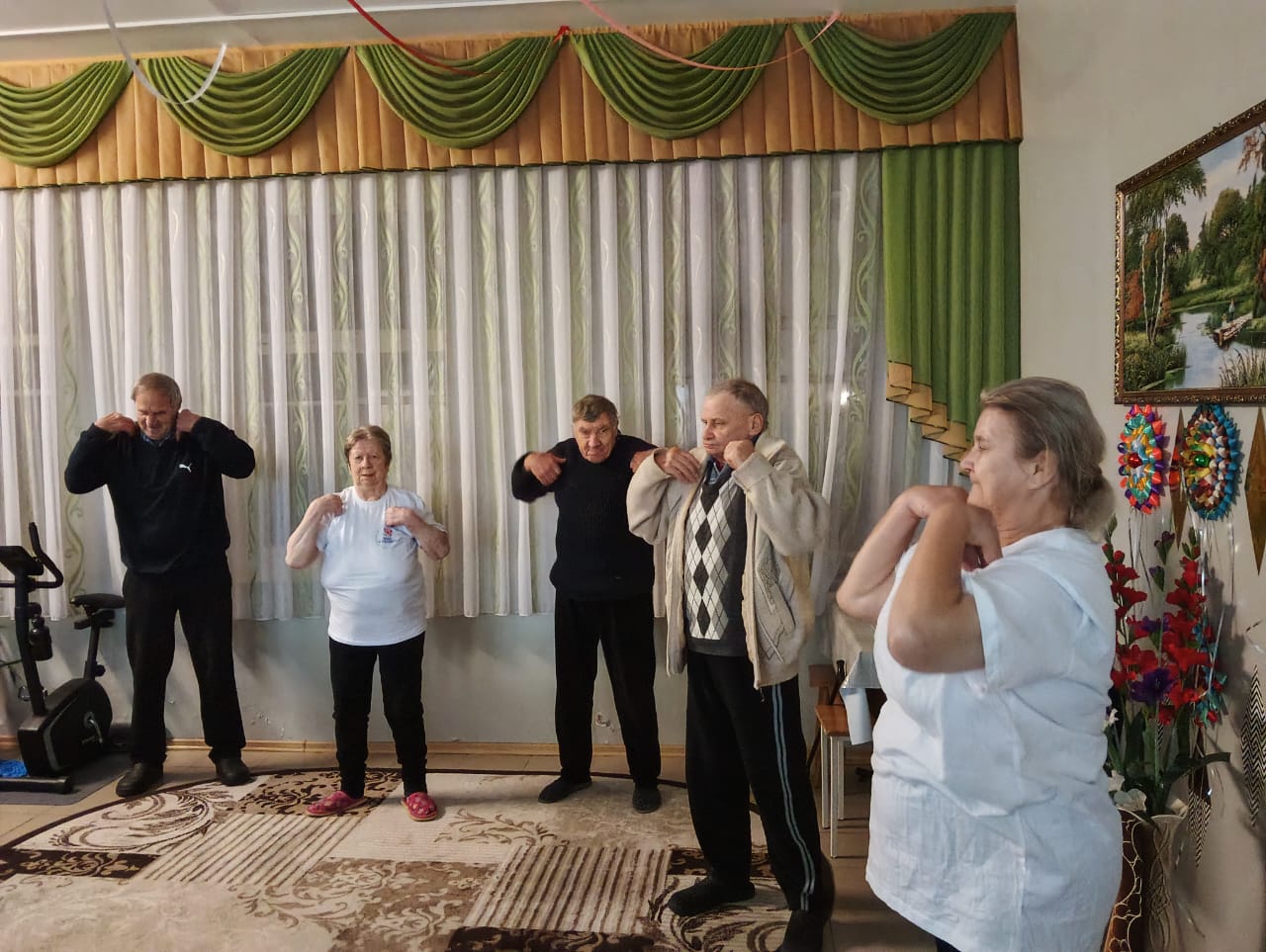 Утренняя зарядка в Холмовском доме-интернате