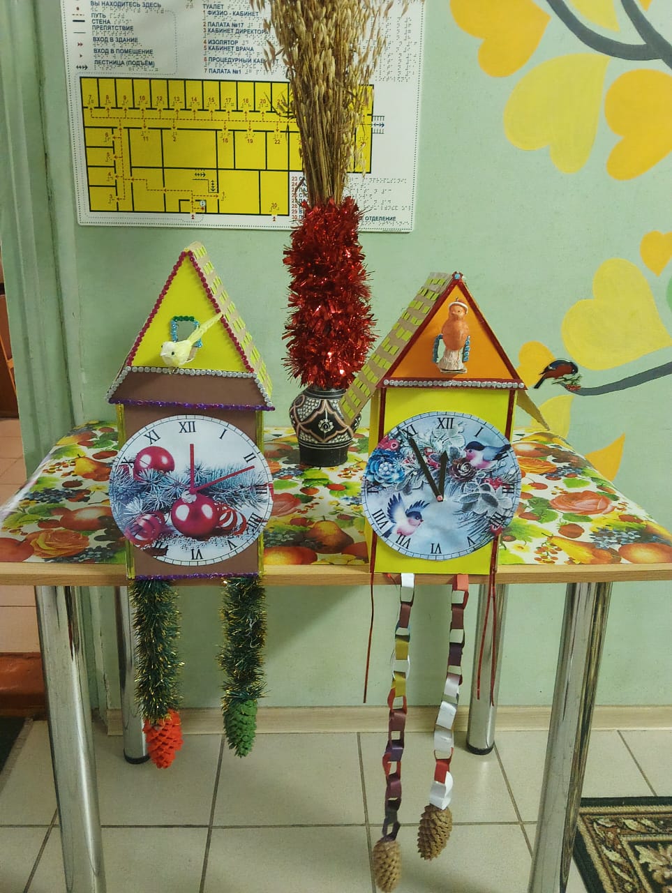 Сегодня получатели социальных услуг Холмовского дома-интернат собственными руками изготовили новогодние часы, которые стали замечательным новогодним украшением нашего дома-интерната, создающим ощущение уюта и тепла.