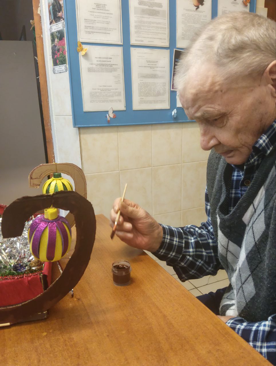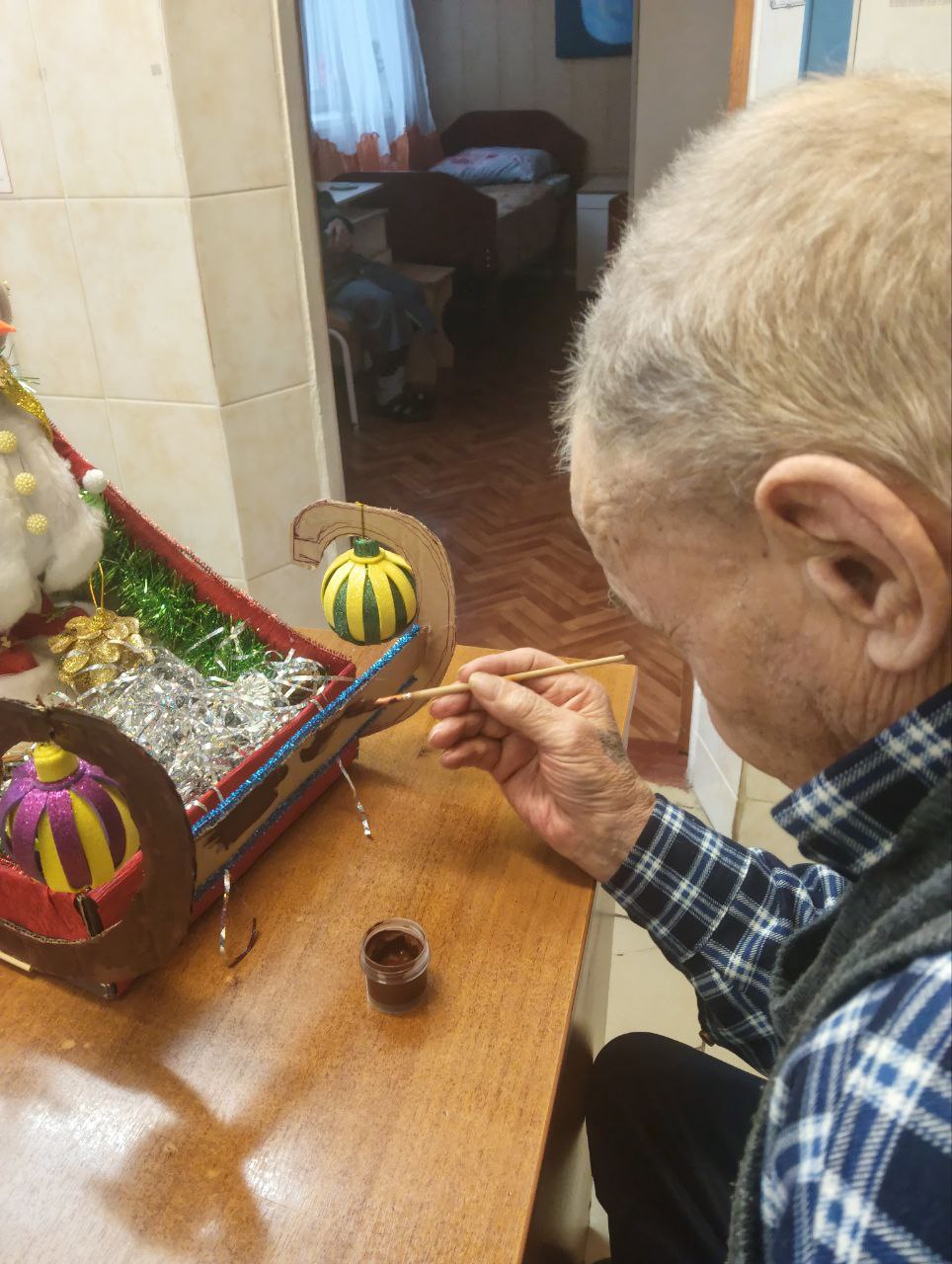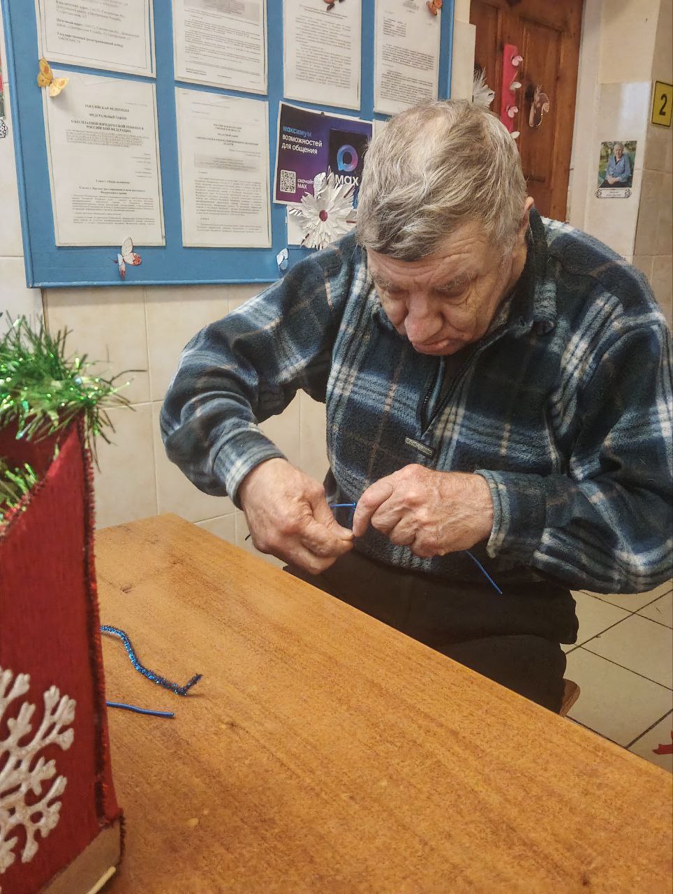 В Холмовском доме-интернате для престарелых и инвалидов прошел творческий мастер-класс по созданию новогодних игрушек и рождественского венка. Участники с радостью погрузились в атмосферу праздника, создавая уникальные украшения для новогодней елки и дома-интерната.