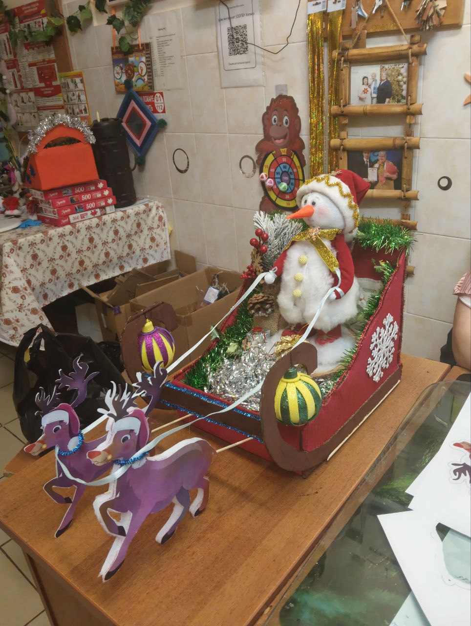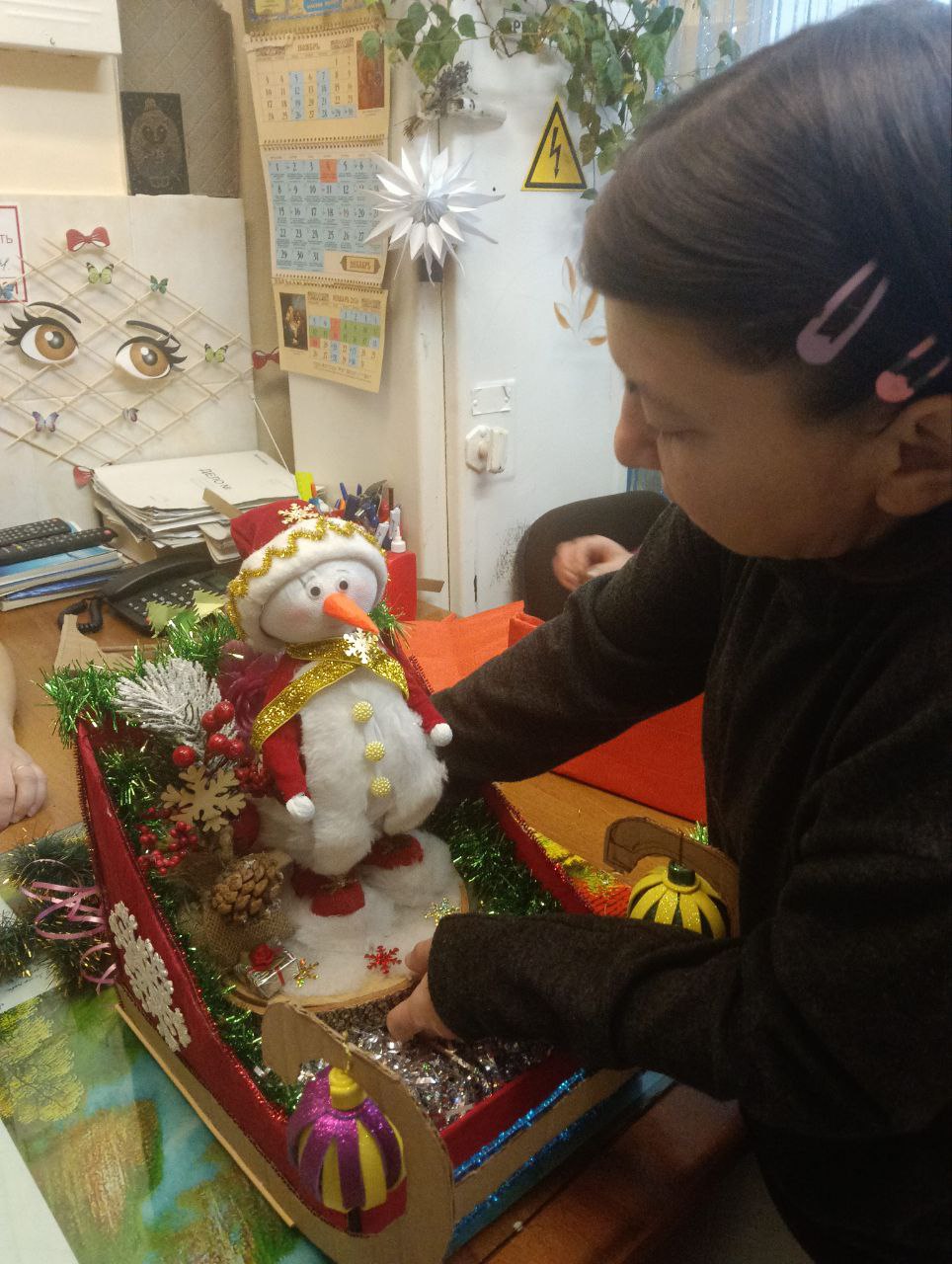 Началась новая рабочая неделя и мы продолжаем украшать наш дом-интернат к Новому году, елки наряжены, а мы продолжаем делать уютные уголки, украшая их новогодними поделками, сделанными собственными руками наших проживающих. Каждый участник вносит свои идеи и вместе их воплощаем. Так у нас появилась в этом году новогодние сани, сделанные их подручных материалов.