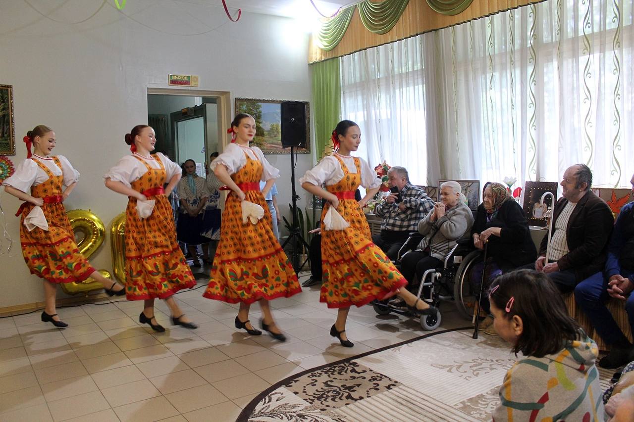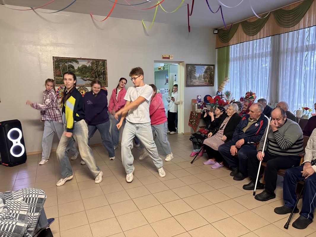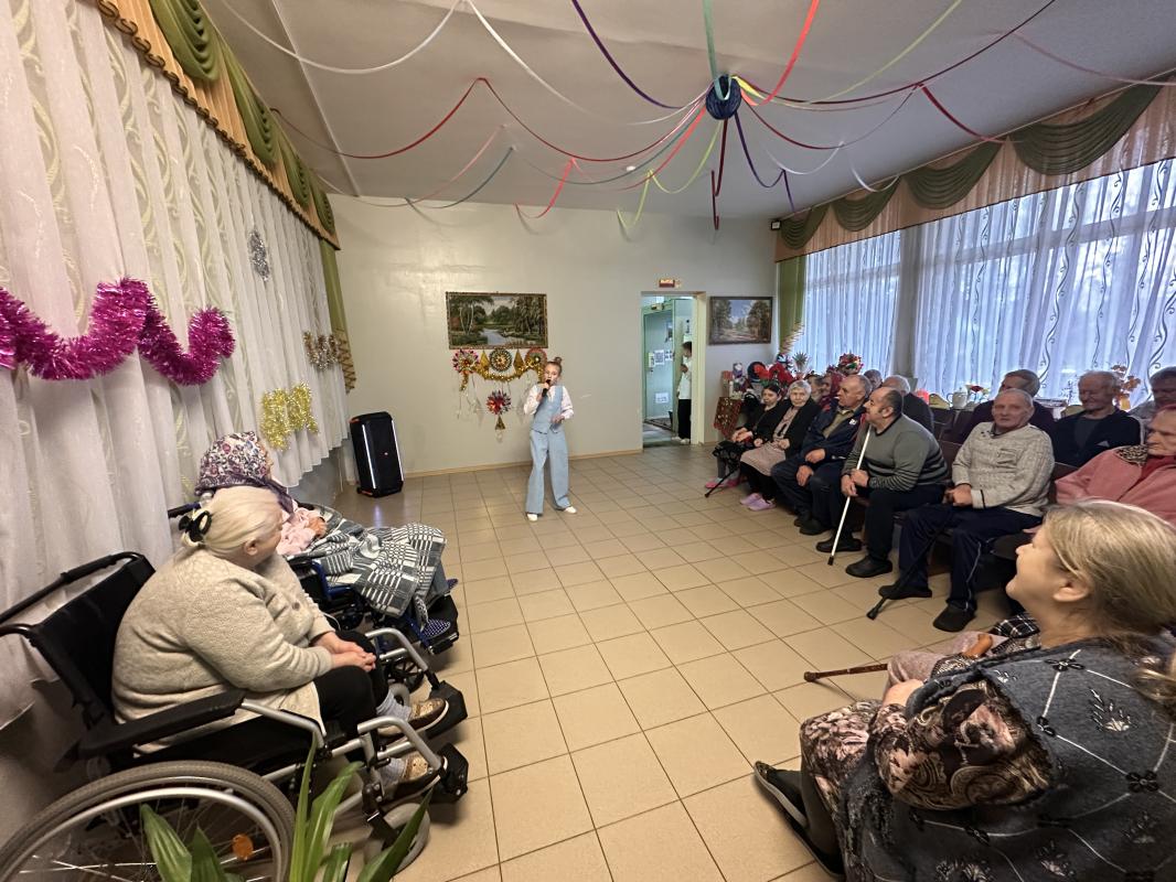 В предновогодние дни получателей социальных услуг дома-интерната артисты порадовали зажигательными танцами участники танцевального коллектива «Солнет», своё инструментальное творчество подарили бабушкам и дедушкам музыканты, а новогодние песни вокалисты. И, конечно же, праздничный настрой создали ведущие концерта.