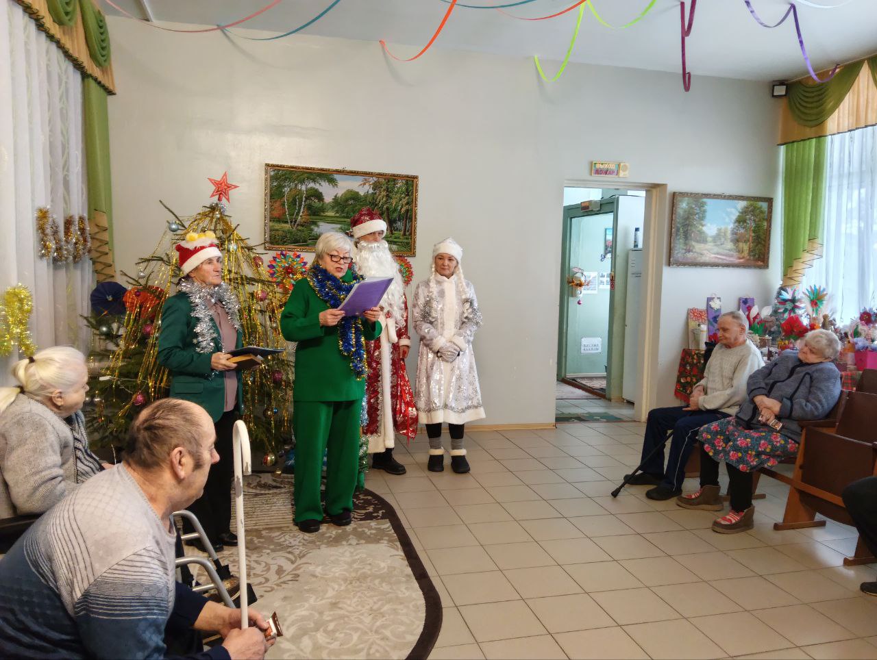 Праздничные украшения в доме-интернате создают атмосферу радости и веселья, наполняя сердца сотрудников и проживающих ожиданием чуда и волшебства.