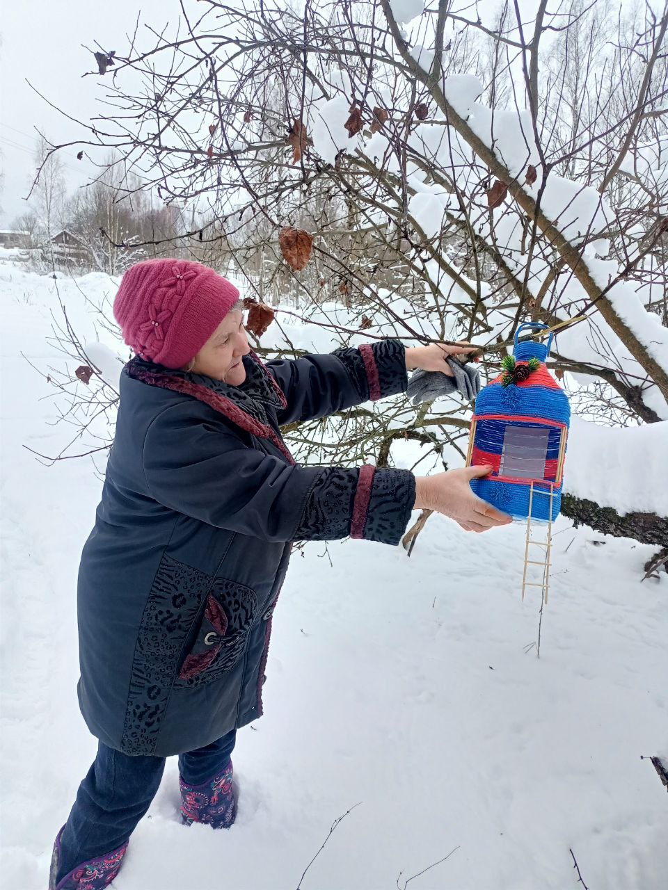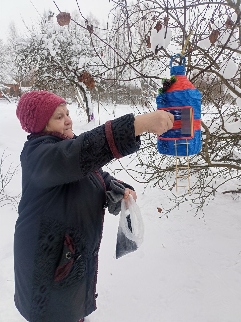 Проживающие Холмовского дома интерната решили совместными усилиями помочь пернатым друзьям пережить морозную зиму. Они изготовили кормушки для птиц из подручных материалов, основой которых стали пластиковые бутылки.